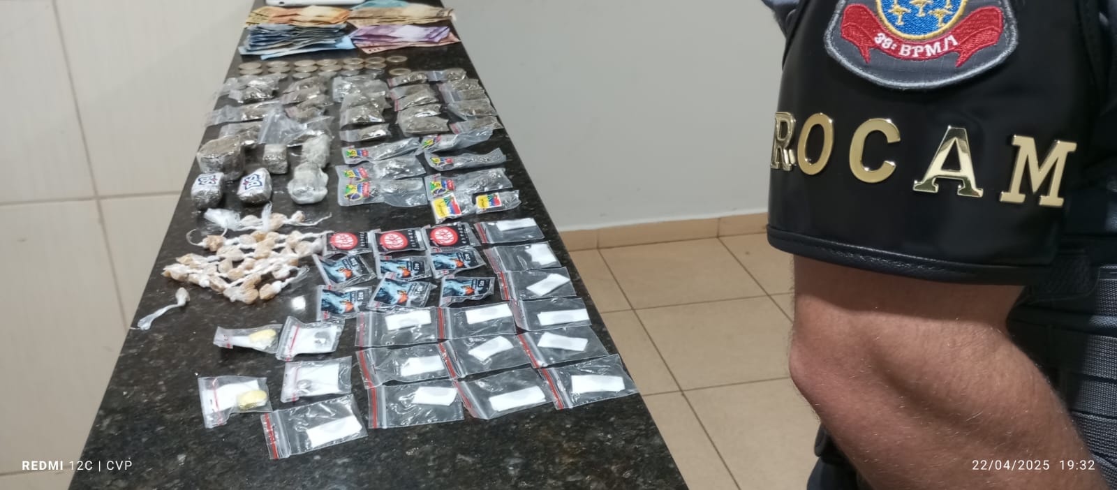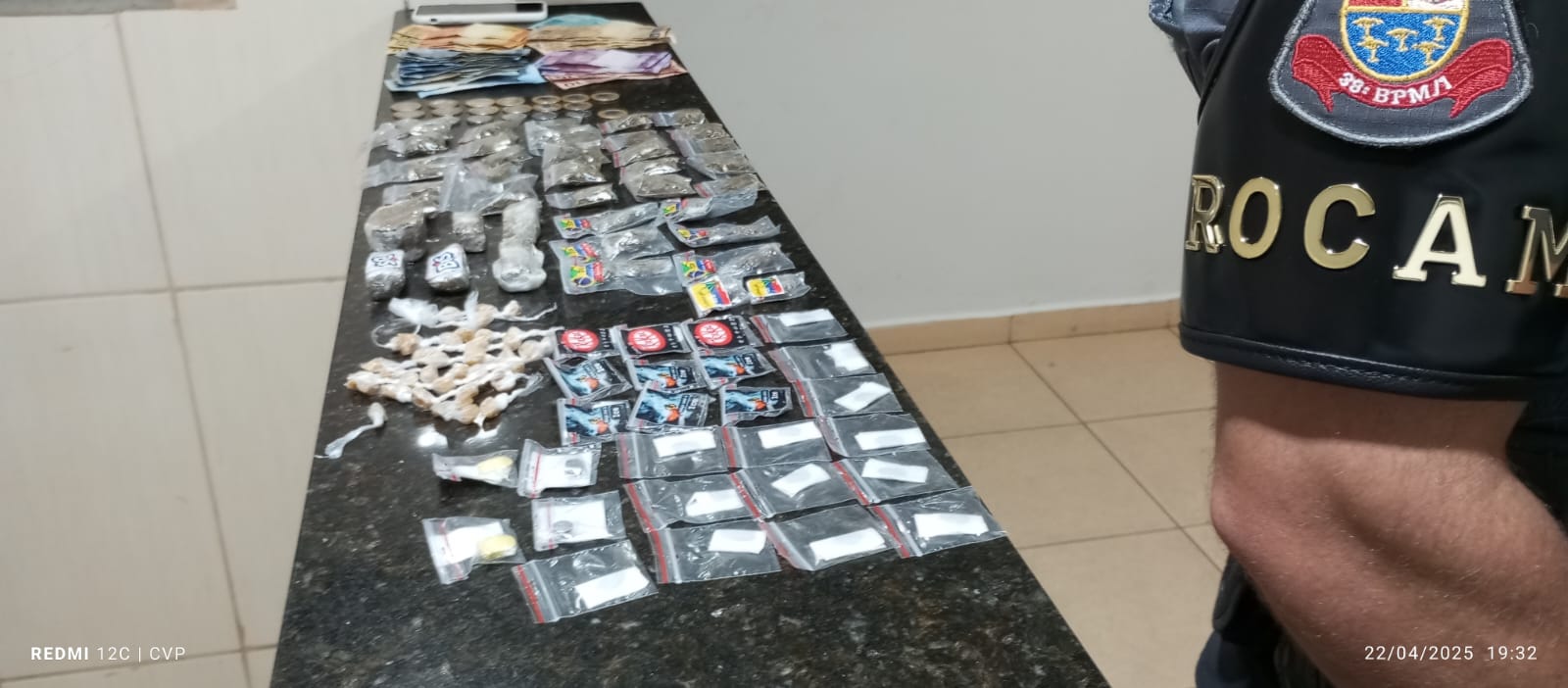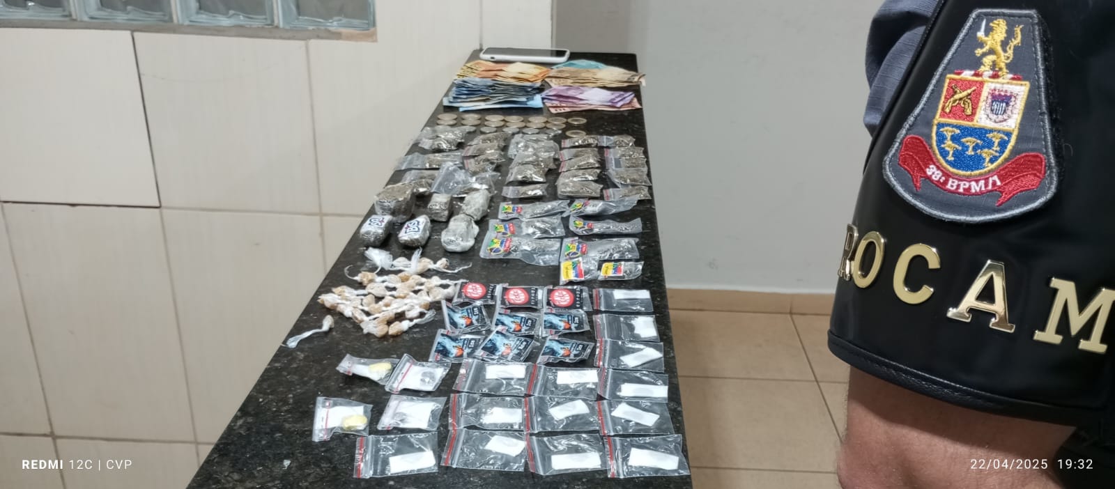 Um menor de 16 anos foi detido pela ROCAM nesta noite de terça-feira, 22 de abril de 2025, com drogas na Rua da Paz, CDHU, bairro Vila Isabel, São Carlos-SP.