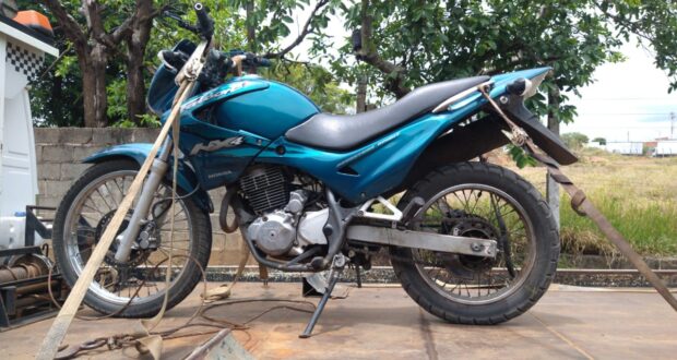 Uma moto furtada na noite do dia 23-10-2020, em Ibaté-SP, foi apreendida pela PM nesta manhã de sábado, 24 de outubro de 2020, após dois indivíduos tentarem assaltar um ciclista em uma estrada de terra que liga Ibaté/Santa Eudóxia.