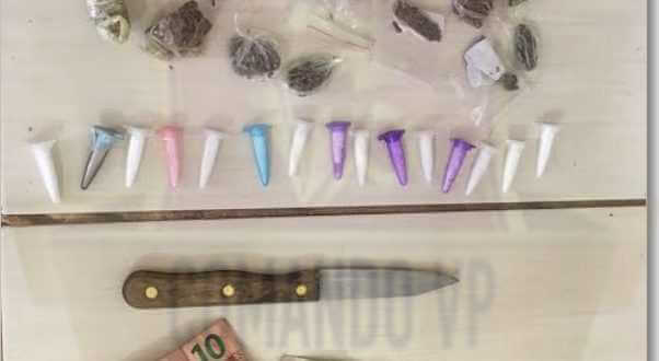 Segundo informações colhidas por nossa equipe de reportagem, o cabo Germano e soldado Marcos estavam em patrulhamento quando o menor saiu correndo. Ao ser abordado foram localizadas 21 trouxinhas de maconha,15 pinos de cocaína e R$ 32,00. Ele foi encaminhado ao Plantão Policial, onde foi entregue para sua genitora.