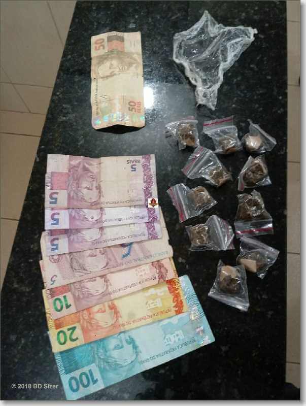 Segundo boletim de ocorrência, por volta da 0:25 minutos os policiais R. Frisene  e D- Oliveira estavam em patrulhamento quando abordaram o menor de 17 anos. Com o mesmo foram localizados R$ 150,00 e drogas. Ele foi encaminhado até sua casa e no interior da mesma foi localizada uma nota de R$ 50,00, a qual ele disse ser falsa. Disse ainda que um usuário de droga comprou entorpecente e pagou com a nota falsa. O menor foi encaminhado ao Plantão Policial,   qualificado e entregue para sua genitora.