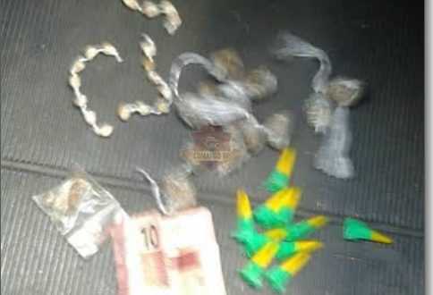 A equipe do sargento Jenuy deteve um adolescente de 15 anos nesta tarde de sábado, 01-10, e com o mesmo foram localizados 21 pedras, 12 trouxinhas de maconha e 10 pinos cocaína. O menor foi abordado na rua Sebastião Lemos, bairro Cidade Aracy, São Carlos-SP.