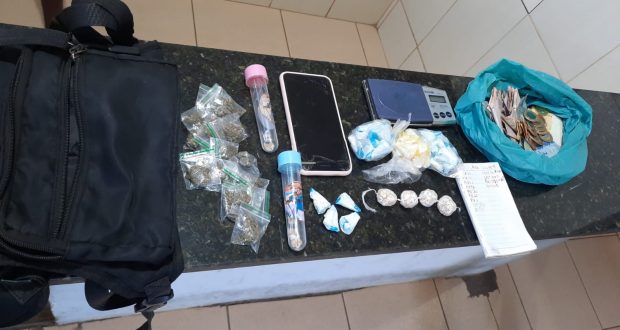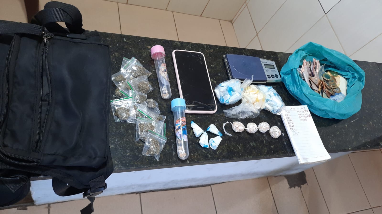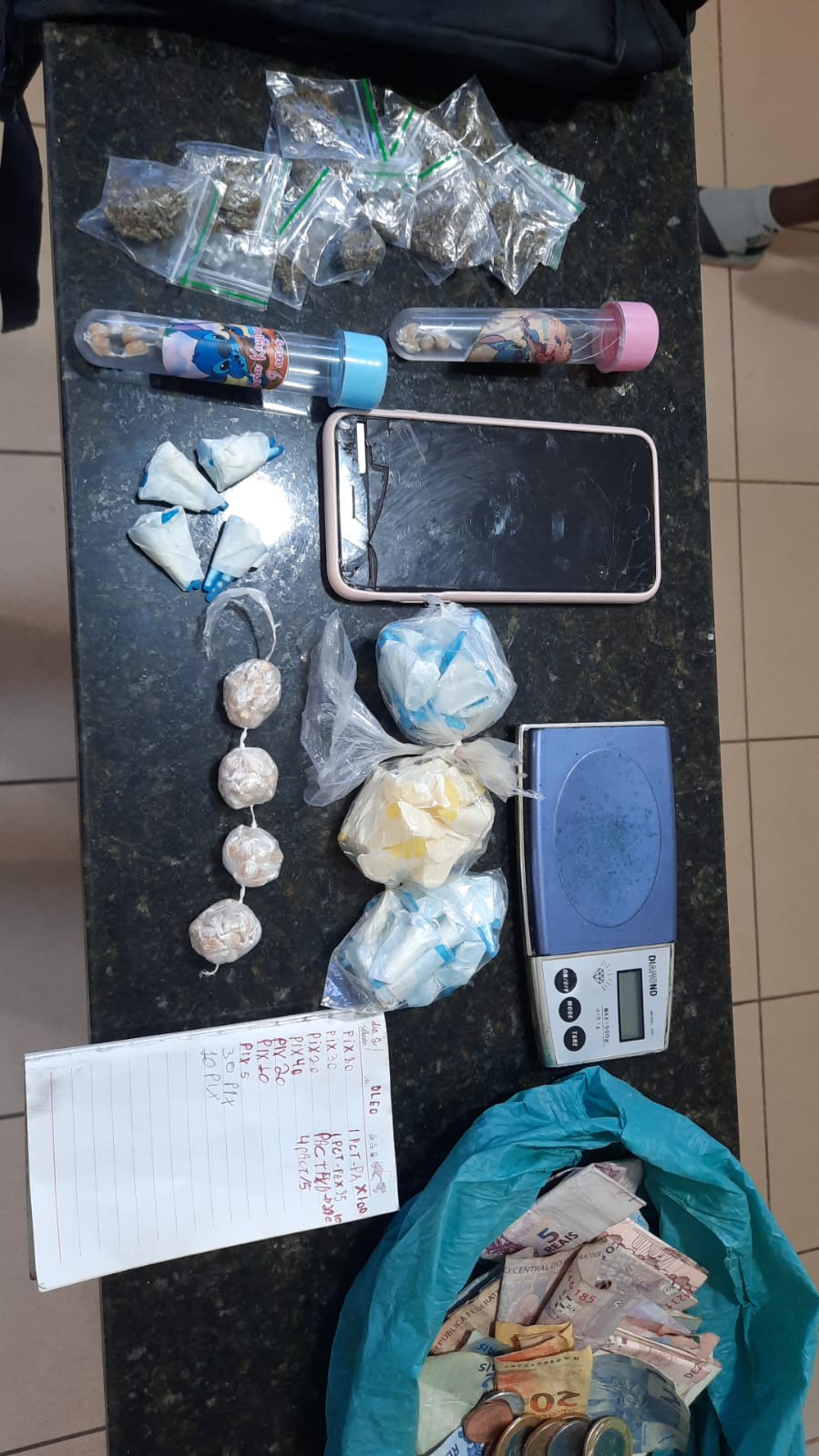 De acordo com informações, os policiais cabos Vale e Alexsandro, foram averiguar denúncias e confirmaram a situação. O menor foi detido e confessou que estava no local vendendo drogas e que ganharia R$ 150,00 por um turno de 12 horas. No local foram apreendidos 92 pinos de cocaína (64 gramas) 150 pedras de crack (18 gramas), 14 porções de maconha (20 gramas), 1 balança de precisão, 1 celular, 1 bloco de notas de contabilidade e R$ 261,05. O detido foi encaminhado para a Central de Polícia Judiciaria de São Carlos e entregue para uma tia.