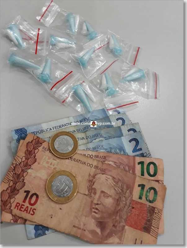 Segundo informações, o Canil da GM estava em patrulhamento pelo local quando se deparou com o menor saindo de uma casa. O mesmo dispensou um saco plástico ao solo e no seu interior continha 21 pinos de cocaína. M poder do jovem foi localizada a quantia de trinta reais.
