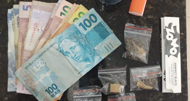 Segundo informações, a guarnição estava em patrulhamento preventivo pela Praça de Esportes do Jd. Beatriz, ao adentrar a rua supra citada avistou 02 indivíduos, sendo 1 feminino que estava em atitude suspeita. Foi encontrado em seu bolso 05 porção substância análoga maconha , 01 dixavador 01 isqueiro e R$ 269.00 ,em cédula trocada. Indagando relatou que somente ele estava traficando . Diante dos fatos sua namorada de 18 anos foi conduzida como testemunha e apresentados na Central de Flagrantes , sendo liberado para seu responsável.