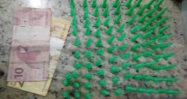 De acordo com informações, os policiais, cabo Tezore e soldado Diogo em atendimento à solicitação anônima de que um sujeito estaria traficando drogas na sua casa. Os policiais se deslocaram para o local e em contato com o menor, este teria confessado a venda de drogas e que a mesma estaria dentro do veículo do seu avô. Em vistoria no veículo Ford Escort, foi localizado no banco traseiro uma garrafa pet transparente e em seu interior havia noventa e três pinos de cocaína. Em revista pessoal no mesmo foi localizado no bolso dianteiro da sua bermuda lado direito foram localizados trinta reais que de pronto nos informou ser proveniente do comércio de drogas e que estaria vendendo cada pino por dez reais.