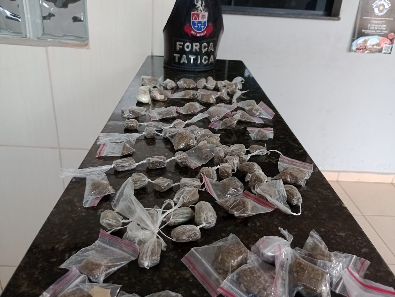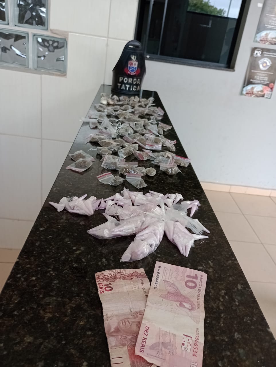 De acordo com informações, os sargentos Caon, Parente e soldado Ribeiro estavam em patrulhamento preventivo, quando abordaram o menor. Com ele foi localizada uma certa quantidade de drogas. O restante estava escondido nas proximidades.