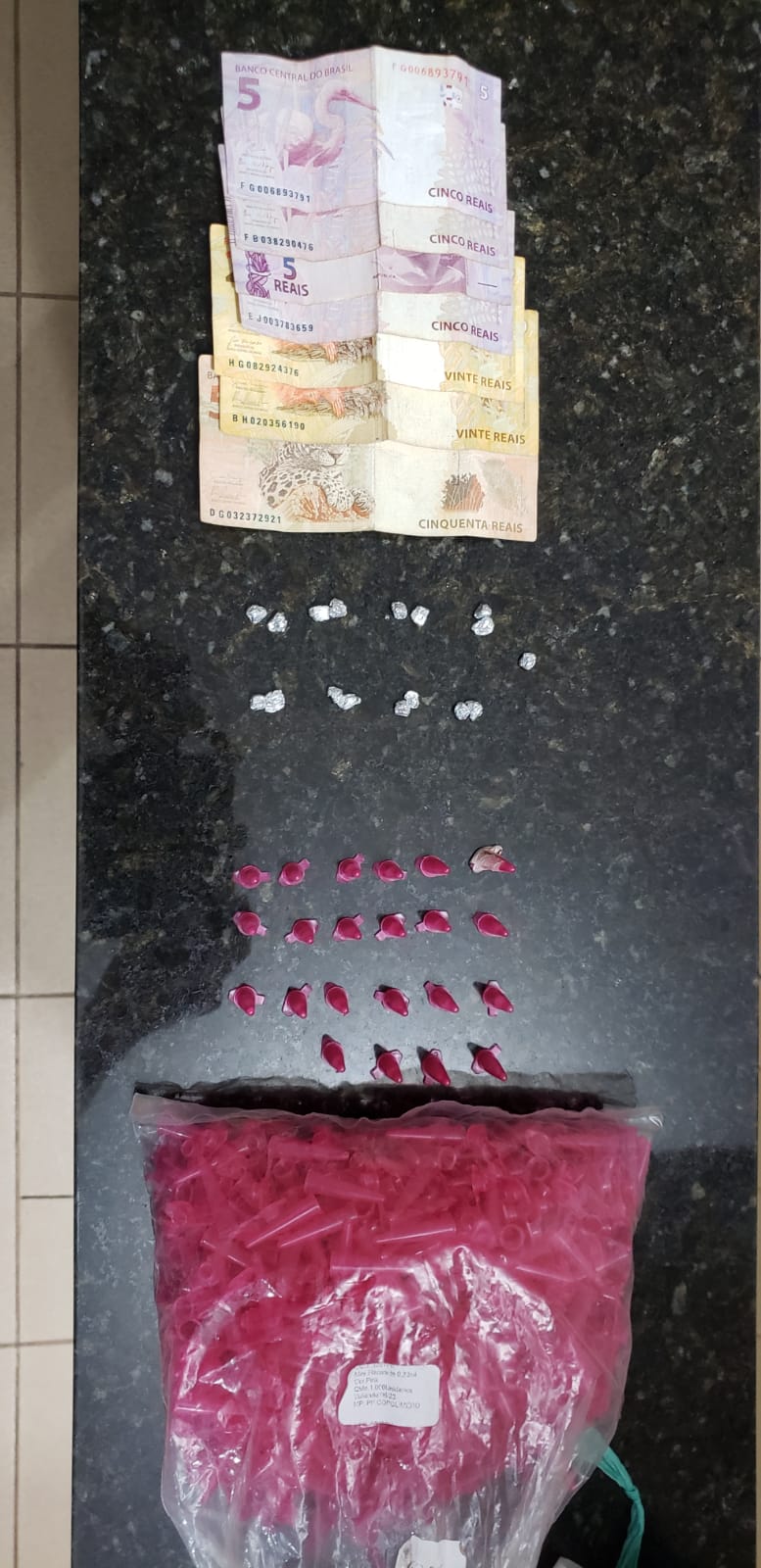 De acordo com boletim de ocorrência registrado no Plantão Policial de São Carlos, a PM estava em patrulhamento preventivo, momento que se deparou com um casal sentado em um sofá na porta de uma casa. O masculino saiu rapidamente e adentrou a residência. Os policiais abordaram a mulher e depois adentraram ao imóvel, onde localizaram 17 pedras de crack, 22 pinos de cocaína, pinos vazios e R$ 110,00 . O sujeito disse que tinha 19 anos e que era traficante. Confessou ainda que na casa da namorada haveria mais droga. A PM foi até a casa da mulher, mas nada de ilícito foi encontrado. O adolescente foi encaminhado ao Plantão Policial de São Carlos, onde foi constado que ele tinha 17 anos e não 19 como havia dito antes. Diante da situação o Conselho Tutelar foi acionado e o jovem liberado.