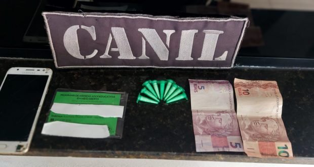 De acordo com informações, o Canil estava em patrulhamento quando se deparou com o menor. Este saiu correndo e dispensou 9 pinos de cocaína e R$ 15,00. O adolescente confessou que estava na pratica de tráfico. Ele foi encaminhado para a Central de Polícia Judiciária, onde ficou à disposição da família.
