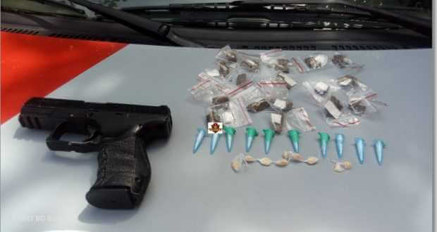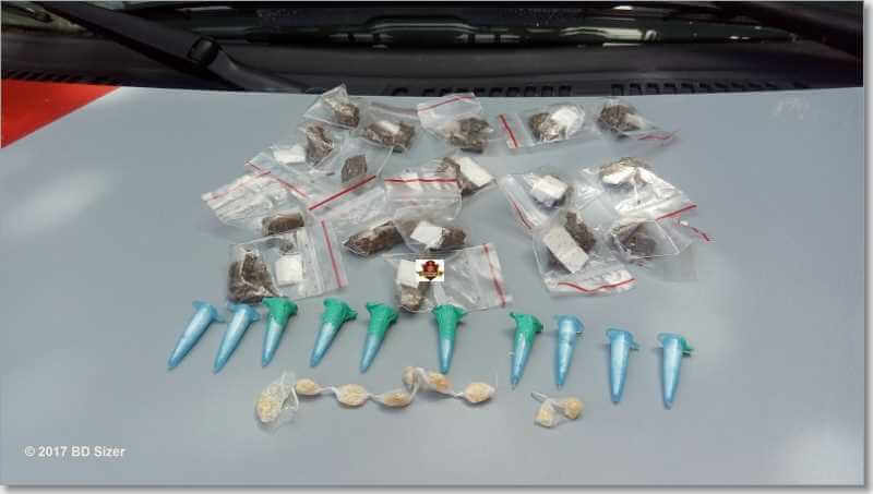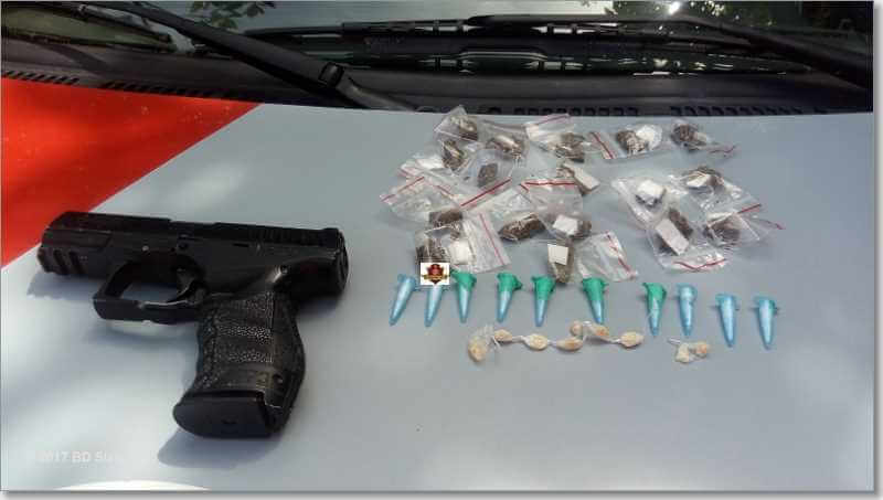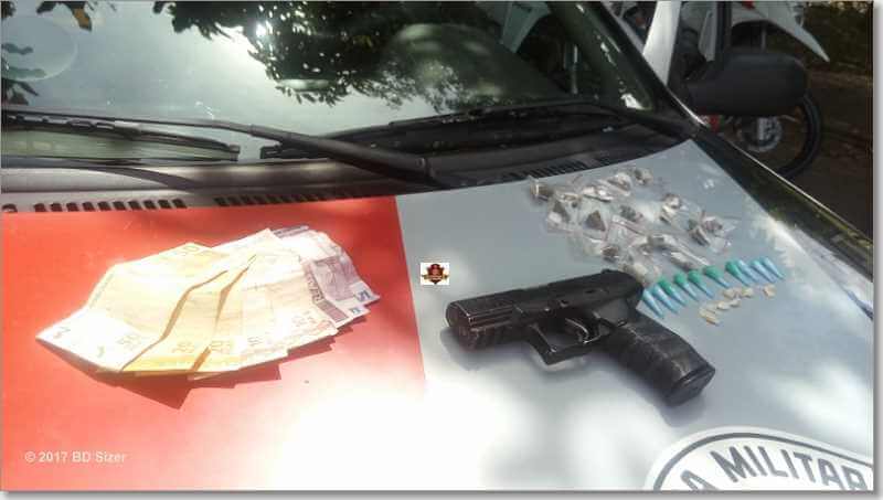 Segundo informações, o sargento Jenuy e cabo Perez, com apoio dos cabos Dias e Oliveira estavam em patrulhamento quando abordaram os menores. 8 pedras de crack, 10 pinos de cocaína , 17 trouxinhas de maconha, uma réplica de arma de fogo e R$ 136,00 foram apreendidos. O trio foi encaminhado ao Plantão Policial, ficando à disposição da família.