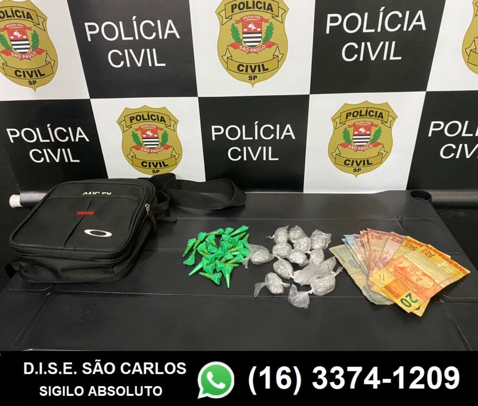 Na tarde de hoje (19/08/2021), durante “atuação de campo de Polícia Judiciária” contra o tráfico de drogas na região de São Carlos,/SP, a POLICIA CIVIL , através de equipe da DISE, sob o comando do Delegado de Polícia Dr. Miguel Carlos Capobianco Jr. efetuou a apreensão de um adolescente infrator pela prática de ato infracional análogo ao crime de tráfico de drogas* (artigo 33, caput, da Lei Federal 11.343/06), localizou e apreendeu drogas e apetrechos, assim como recuperou objeto produto de roubo.