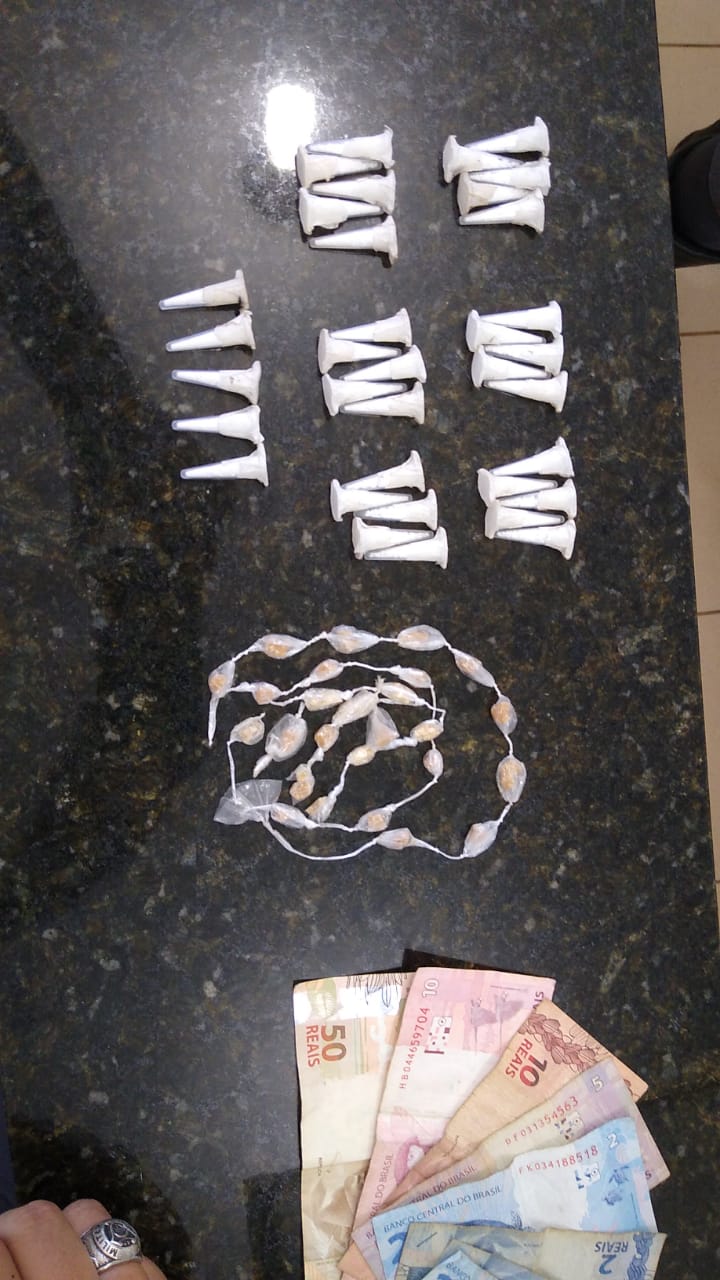 De acordo com informações, a PM estava realizando operação saturação no referido local, momento que avistou dois menores de idade, ambos de 16 anos. Os jovens estavam em via pública e um em poder de uma sacola. Os garotos já conhecidos nos meios policiais, foram abordados e na sacola localizados 15 porções de maconha, 26 pedras crack, 35 pinos cocaína e 83 reais.