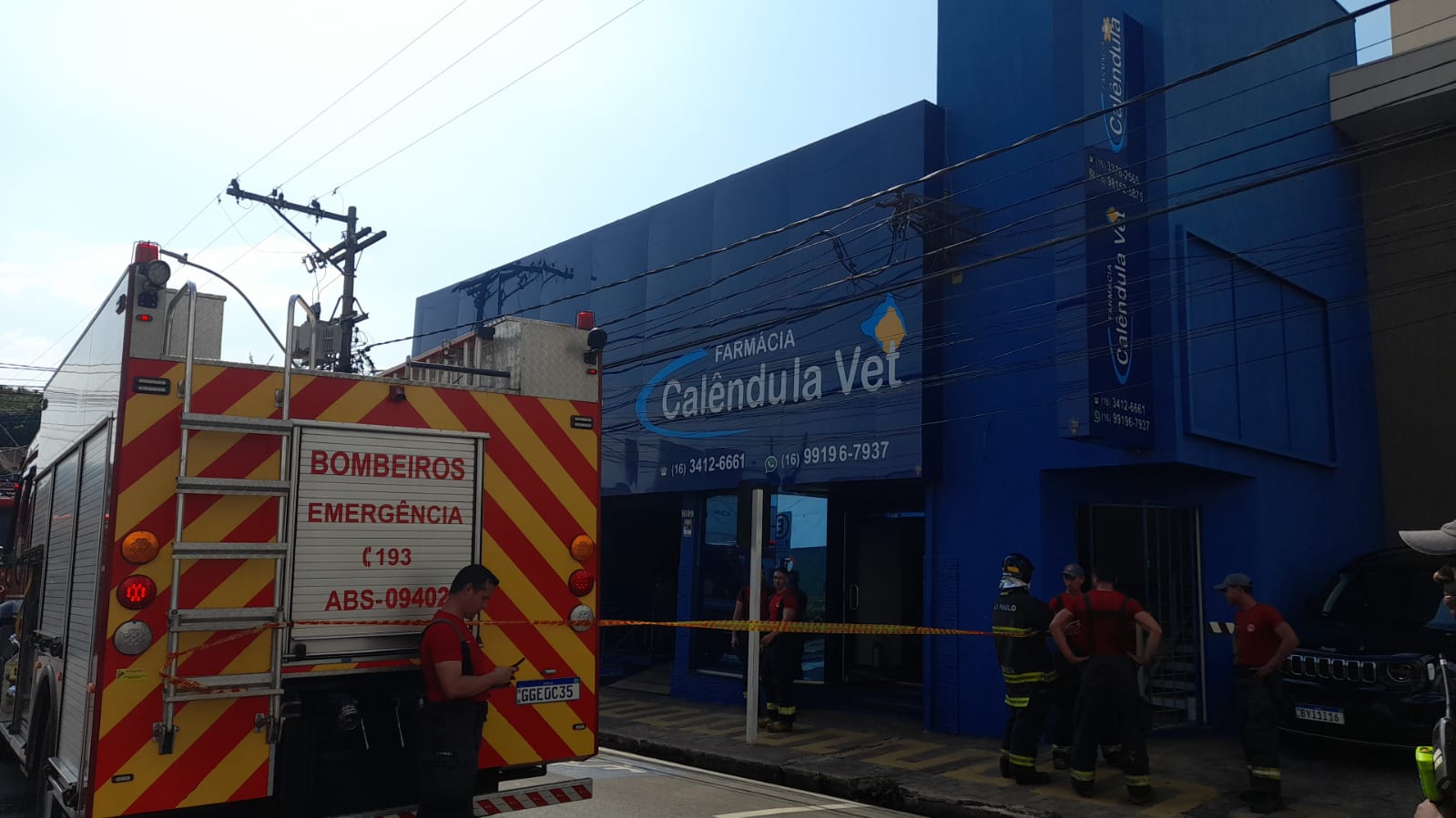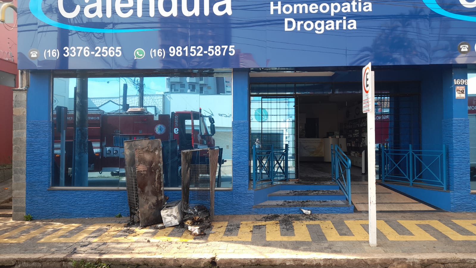 Na tarde do dia 06-10-2023, uma farmácia situada na Rua XV de Novembro, Centro de São Carlos-SP, pegou fogo.