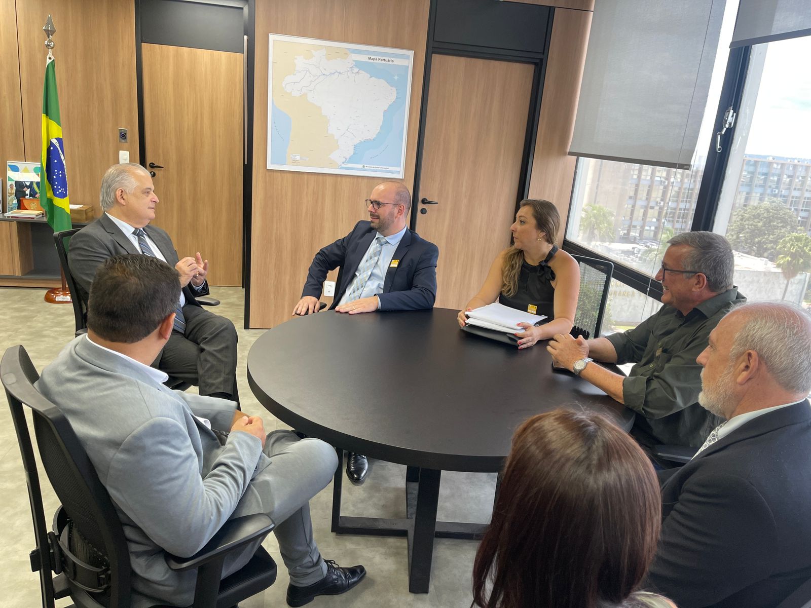 Participaram também da reunião os secretários municipais de Educação, Roselei Françoso, de Meio Ambiente e Desenvolvimento Sustentável, Nino Mengatti, e de Segurança Pública e Defesa Social, Samir Gardini.