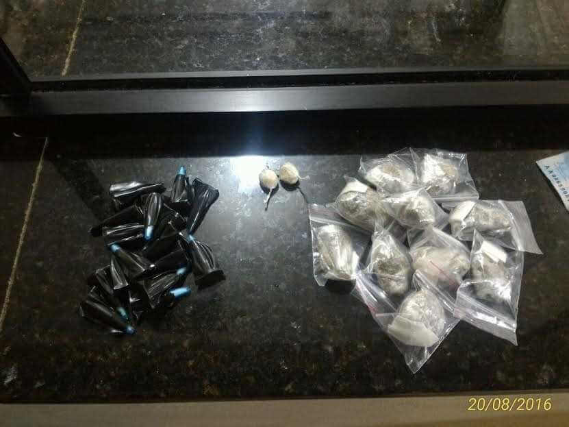Segundo informações, uma guarnição da PM, composta pelos policiais cabo J-Batista e soldado Fumagale estava em patrulhamento pela rua Tabatinga, bairro Jd. Cruzado, quando o menor saiu de um local conhecido como “Fortaleza”. Este jogou algo ao solo e no seu interior continha 5 pinos de cocaína. O menor acabou confessando que dentro do barraco de onde ele estava saindo tinha mais drogas. Os policiais localizaram mais drogas. No total foram localizados 16 pinos de cocaína,10 de maconha, 2 pedras de crack e R$ 213,00. O jovem delinquente foi conduzido ao Plantão Policial de São Carlos, onde foi entregue para sua genitora.