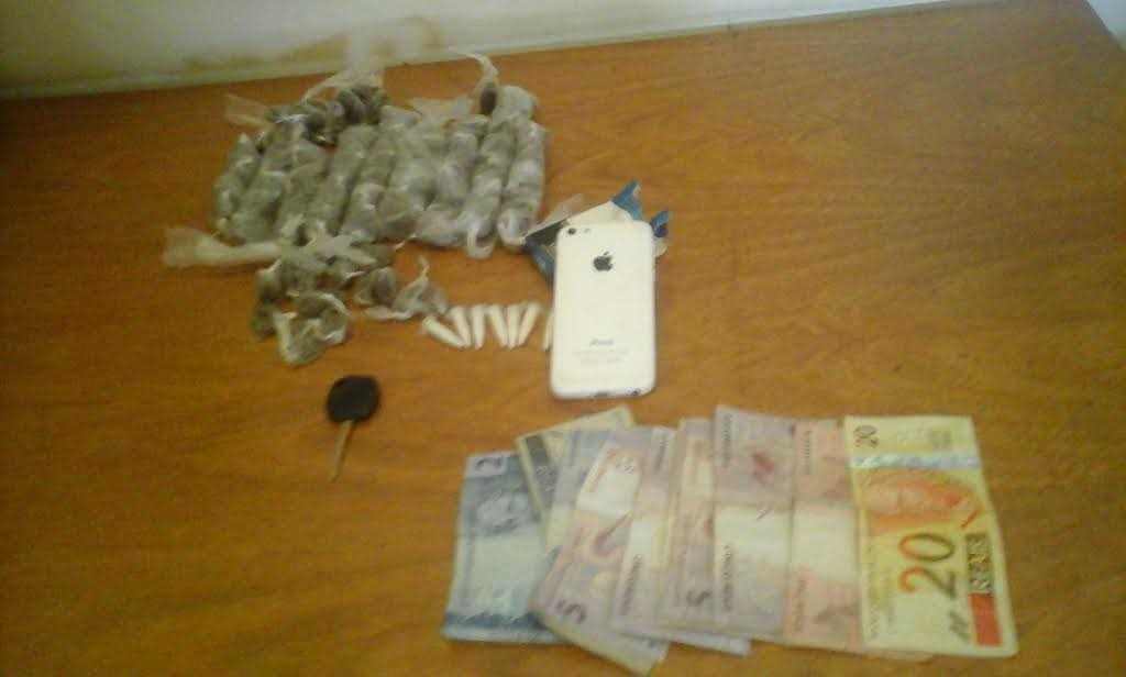 Segundo informações, colhidas por nossa equipe de reportagem, por volta das 9:30, o Centro de Operações da Polícia Militar (COPOM) recebeu denúncia que um jovem estava vendendo drogas na rua Rio Tapajós, bairro Jóquei Clube. Para lá se deslocaram os combatentes. O adolescente com as características passadas foi abordado e ao ser indagado, indicou dois locais onde as drogas estavam escondidas. Maconha e cocaína foram localizada e uma certa quantia em dinheiro. O adolescente disse que começou traficar no último sábado, 27-08, e que hoje já havia vendido três trouxinhas de maconha. Ele foi conduzido à Delegacia de Investigações Sobre Entorpecentes (DISE), e encaminhado ao NAI. No total foram apreendidas 155 trouxinhas de maconha, 7 pinos de cocaína e R$ 263,00.