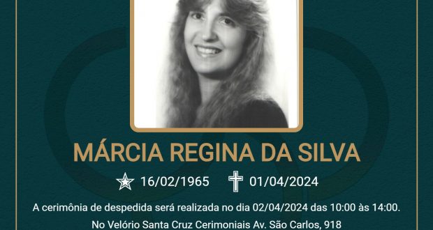 É com profundo pesar e dor, que comunico o falecimento da nossa querida Márcia Regina da Silva, ocorrido nesta noite. A Márcia não é só uma amiga do dia a dia, ela foi uma mãe e uma irmã em muitos momentos, sua alegria contigiava desde cliente aos amigos. Lutou, lutou e lutou bravamente até o fim sem ao menos reclamar de nada. Amava incondicionalmente sua família e seus animais, sem se esquecer das suas plantas. Em nossa última conversa, ela me disse: “sou guerreira e vou aceitar tudo que tiver que aceitar”. Hoje numa fração de segundo, com serenidade assim como uma “vela que se apaga”, nossa Márcia, entregou sua vida nas mãos de Deus onde não haverá mais dor nem sofrimento pois ela completou seu ciclo, sua missão e sua Páscoa. “Combati o bom combate, terminei a corrida, conservei a fé. E agora já está reservada para mim a coroa da justiça, que o Senhor, o justo juiz, me dará naquele Dia” (2Tm4,7-8).