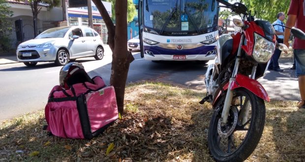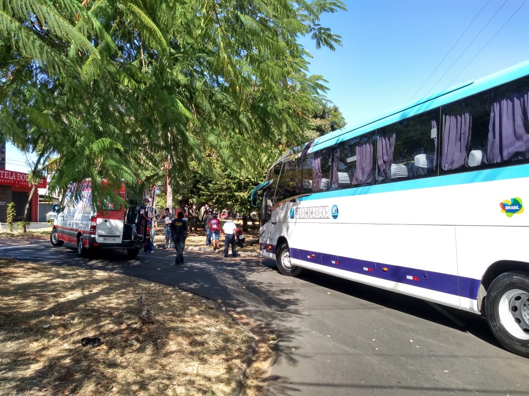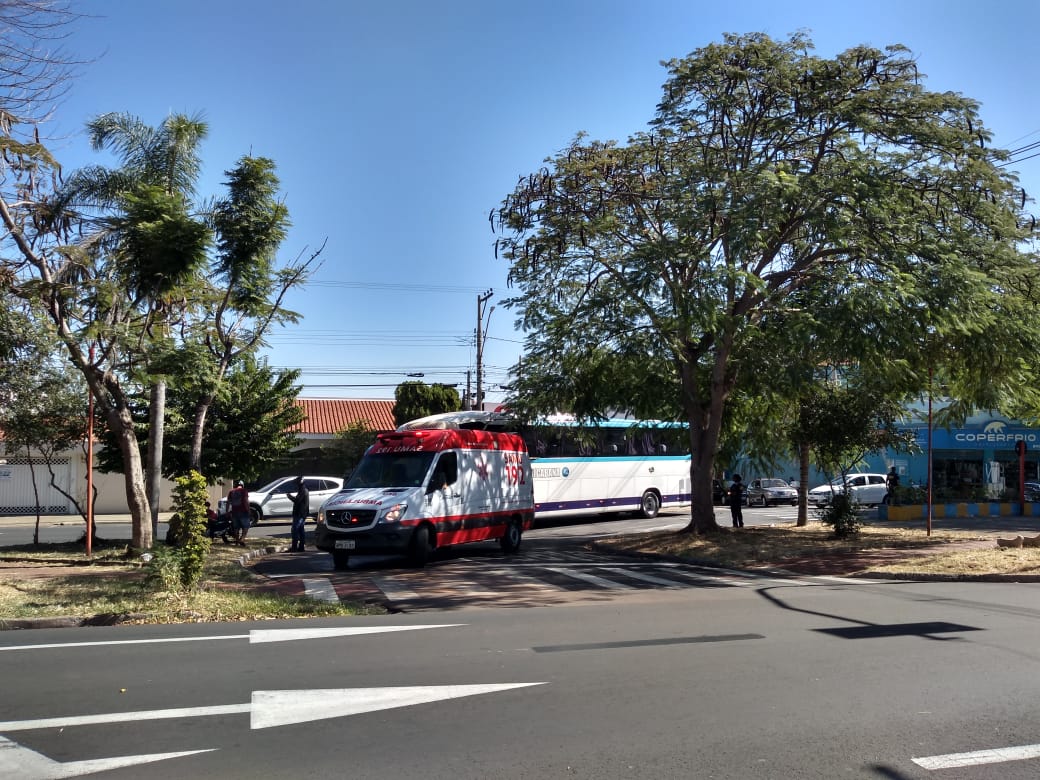 De acordo com informações, a moto e o ônibus transitavam no mesmo sentido. O ônibus foi fazer uma conversão e a moto acabou colidindo na lateral. O SAMU foi acionado e socorreu a mulher para a Santa Casa. Aparentemente sem gravidade.