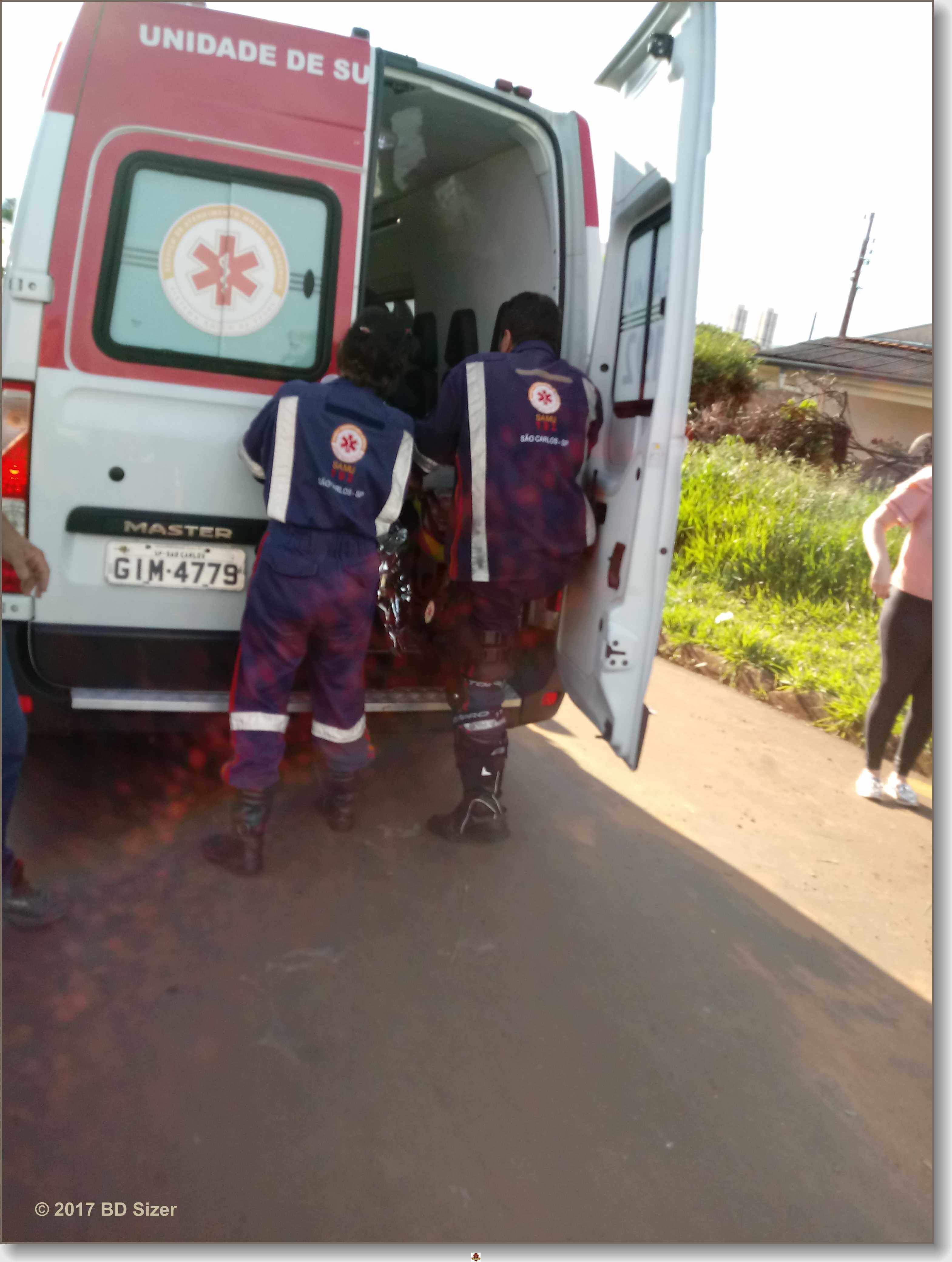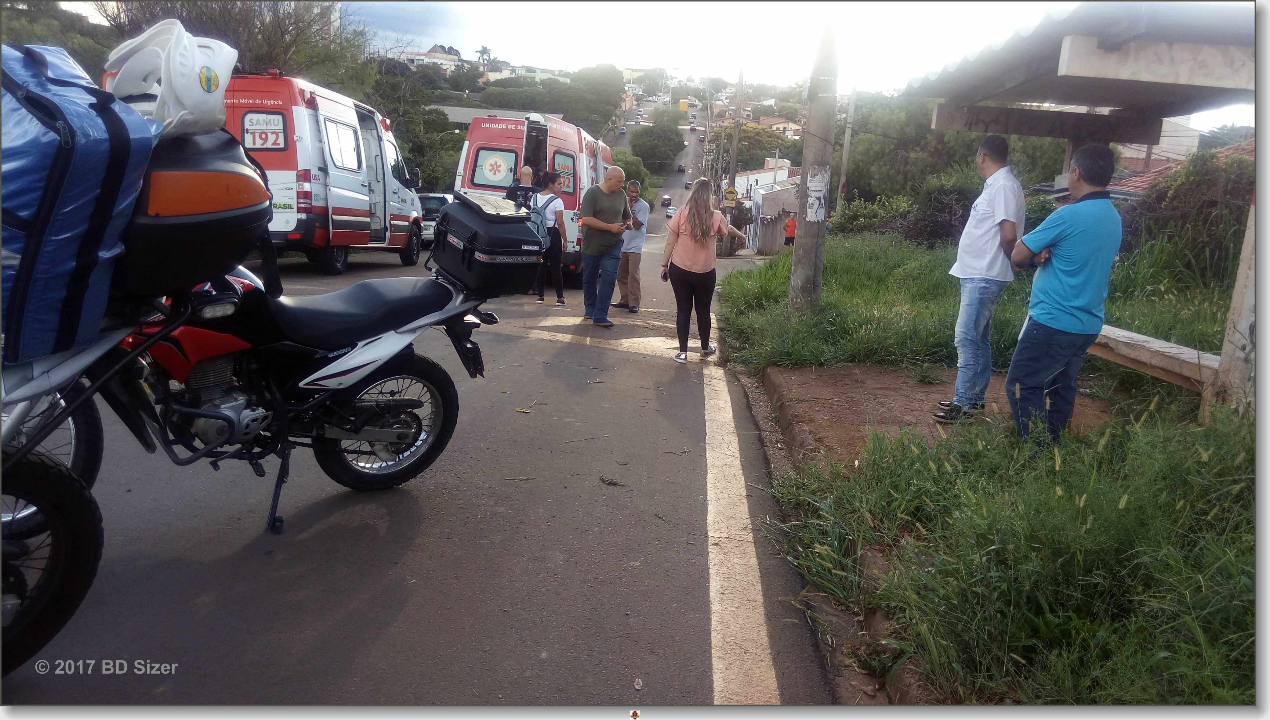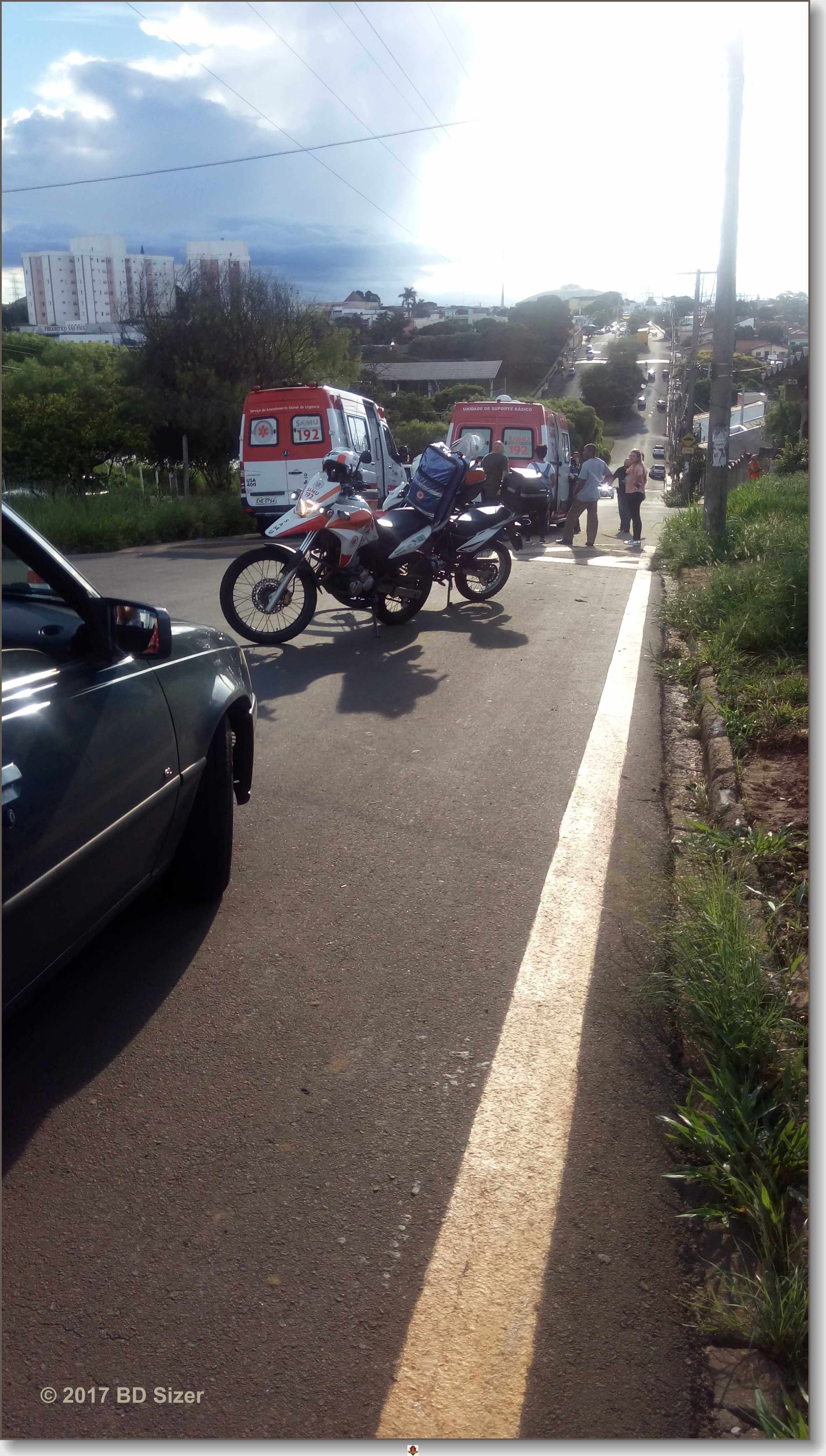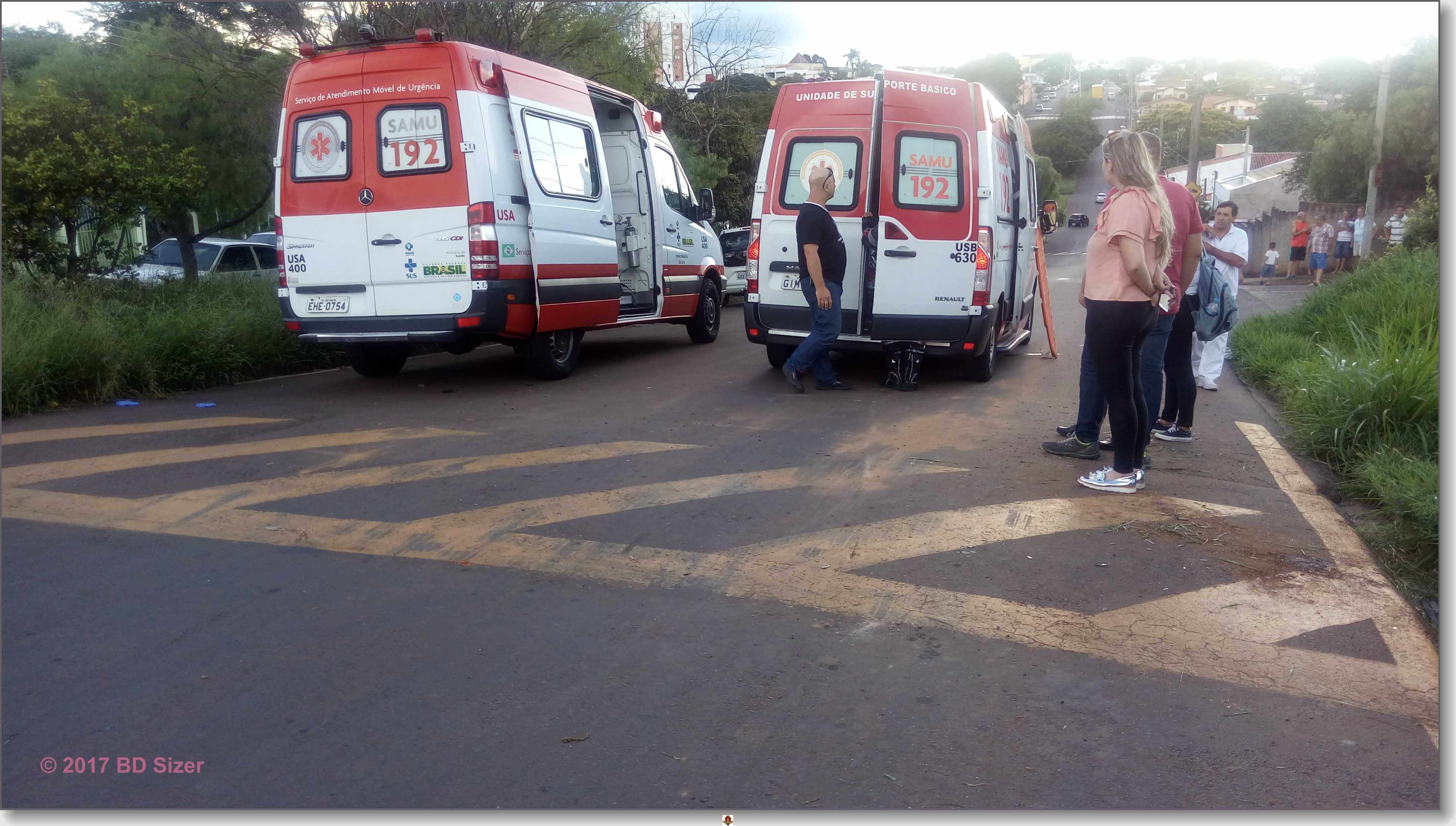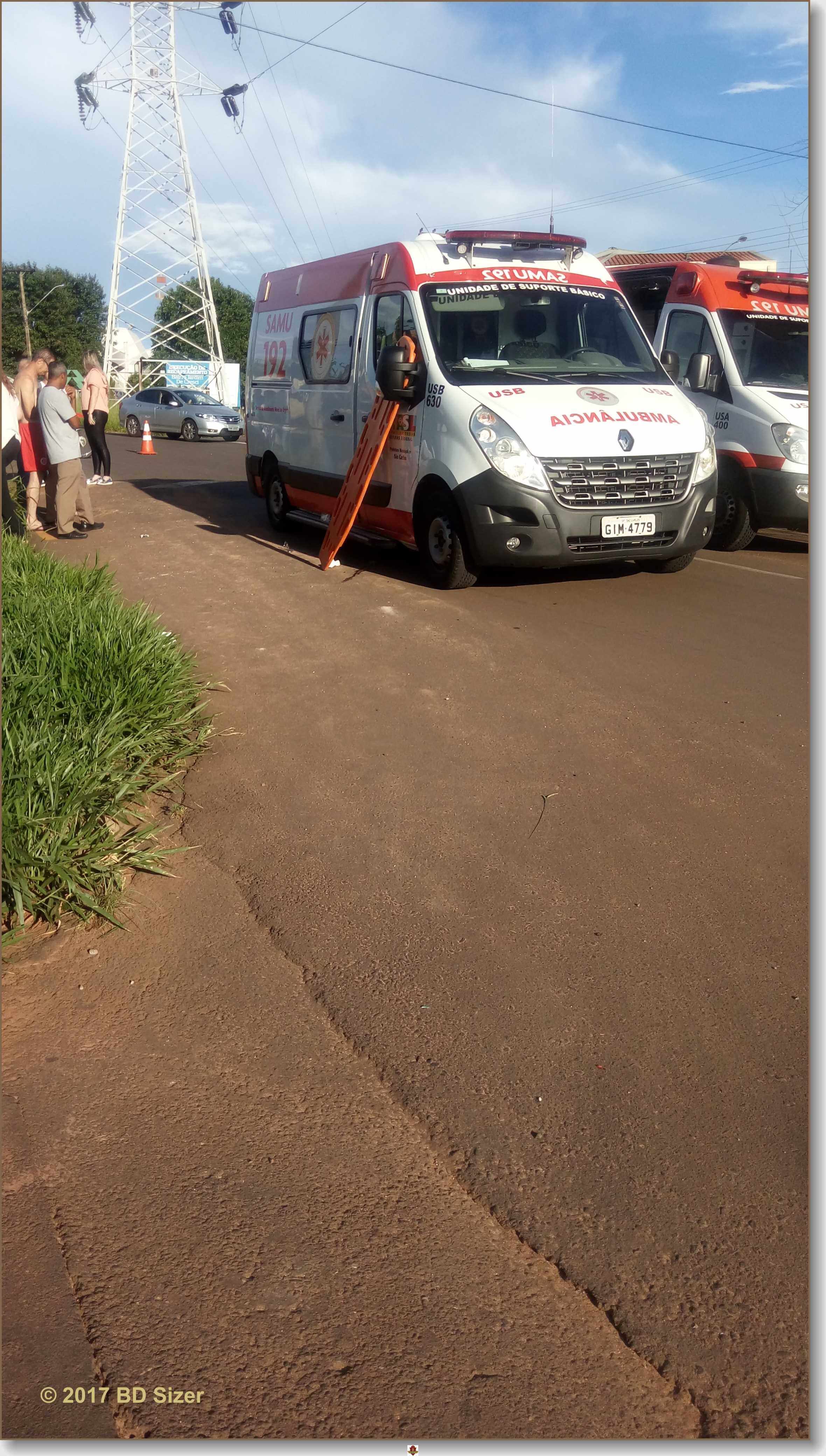 Segundo informações, o casal estava descendo a ferida avenida e por motivos desconhecidos perdeu o controle e colidiu no poste. O resgate do Corpo de Bombeiros, a “Motolância”, uma unidade básica do SAMU foram para o local, mas devido a gravidade que a jovem Stefani, de 18 anos, se encontrava foi acionado a Unidade de Suporte Avançado (USA) do SAMU foi acionada. O Dr.Guilherme kemp, com apoio do Elvis , Adriano, Vanda, Isabel, Daniel, Jenifer ,e com auxilio Bombeiro Civil Zanete ficaram cerca de 40 minutos tentando reverter o quadro da jovem. Quando conseguiram a encaminharam à Santa Casa, onde a equipe médica já a aguardava. A moto foi retirada do local por amigos do jovem.
