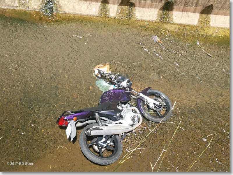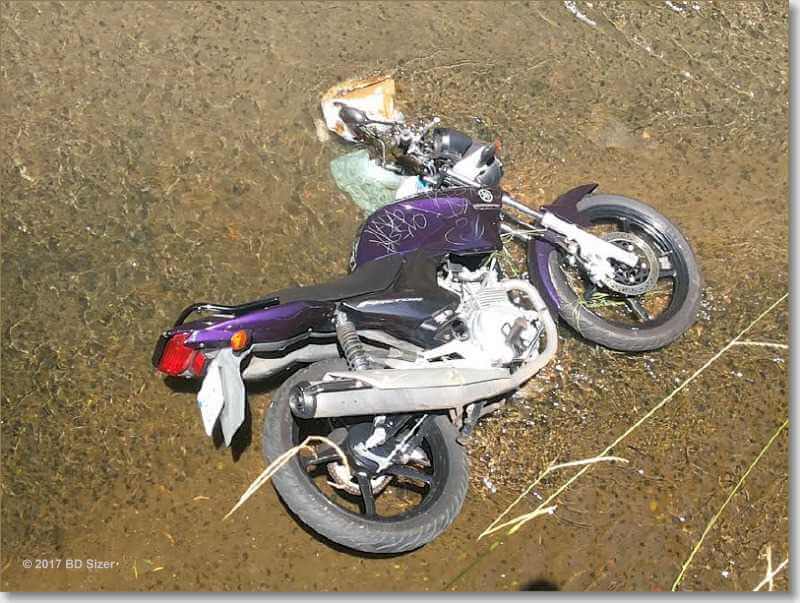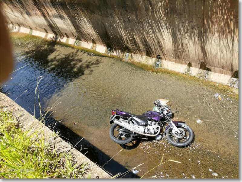 Uma moto com queixa de furto foi localizada no final desta manhã de terça-feira, 14-04-2017, dentro de um córrego na Avenida Trabalhador Sãocarlense, região do Campus Um da USP, São Carlos-SP.