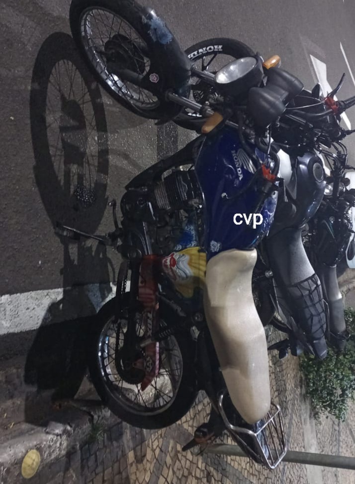 Nesta madrugada de domingo, 23/04/2023, policiais militares apreenderam uma moto de procedência duvidosa, a qual estava estacionada na Av. São Carlos, Centro de São Carlos-SP.
