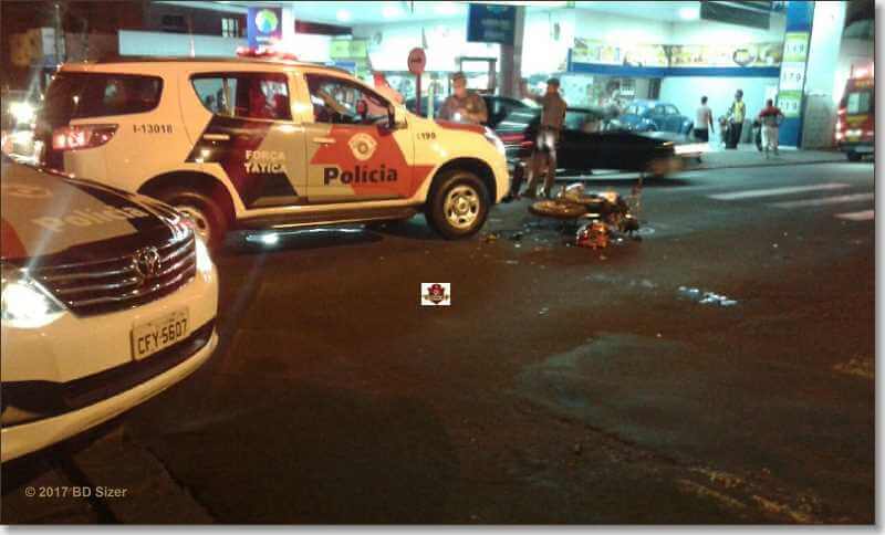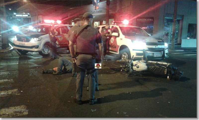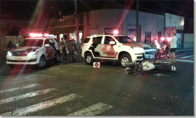 Por volta de 22h desta segunda-feira (9-10-2017), um motociclista ficou gravemente ferido ao ser atingido por uma viatura da Força Tática da Polícia Militar no Centro de Araraquara-SP. Segundo informações, a viatura estava pela rua São Bento , no cruzamento com a Avenida Barroso, teria avançado  o sinal vermelho e atingido o motociclista, de 33 anos.