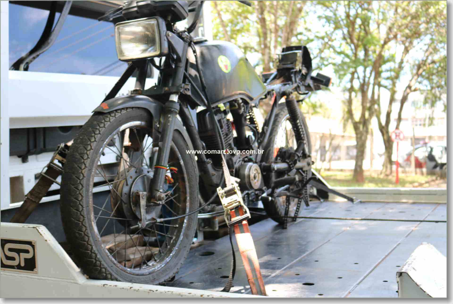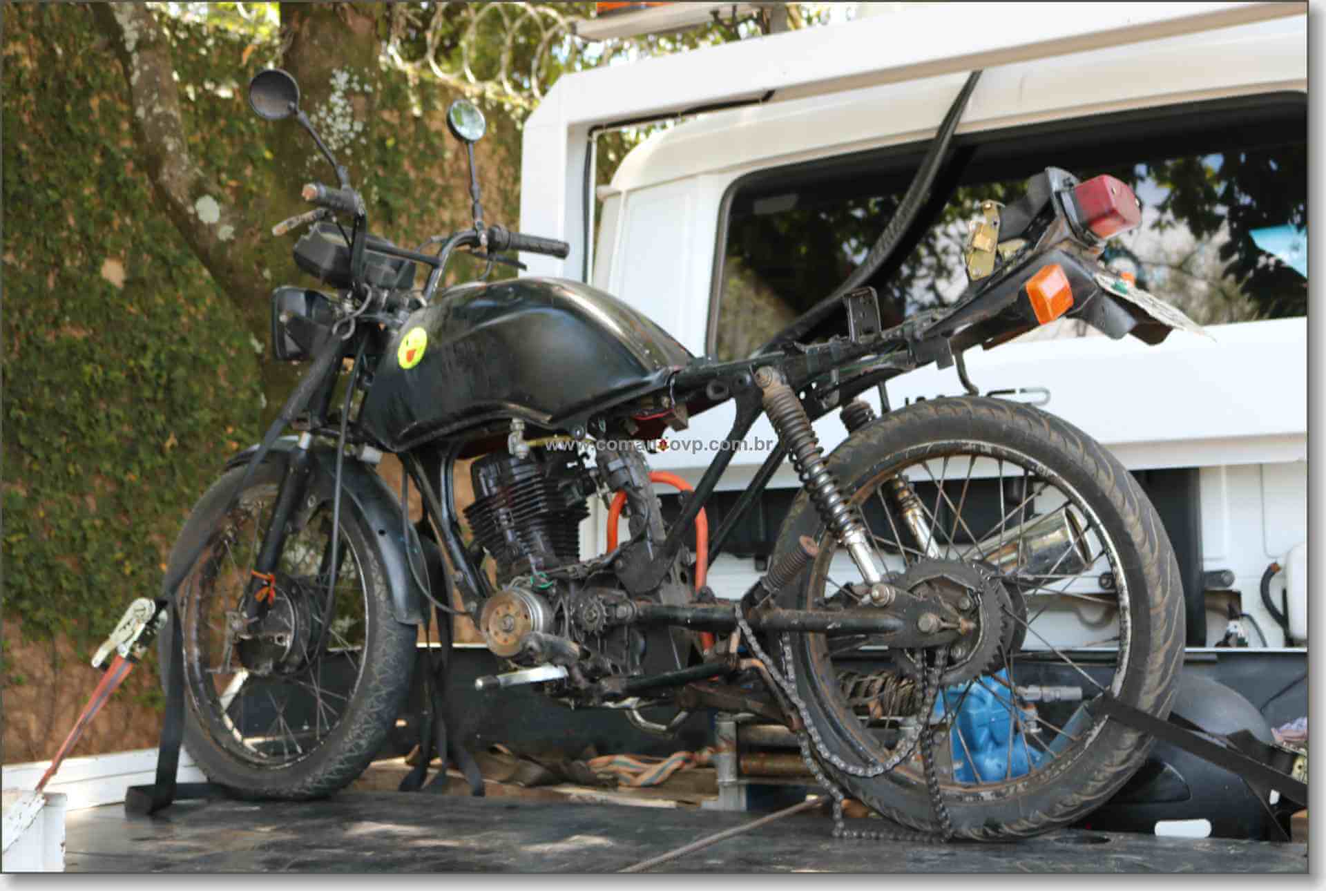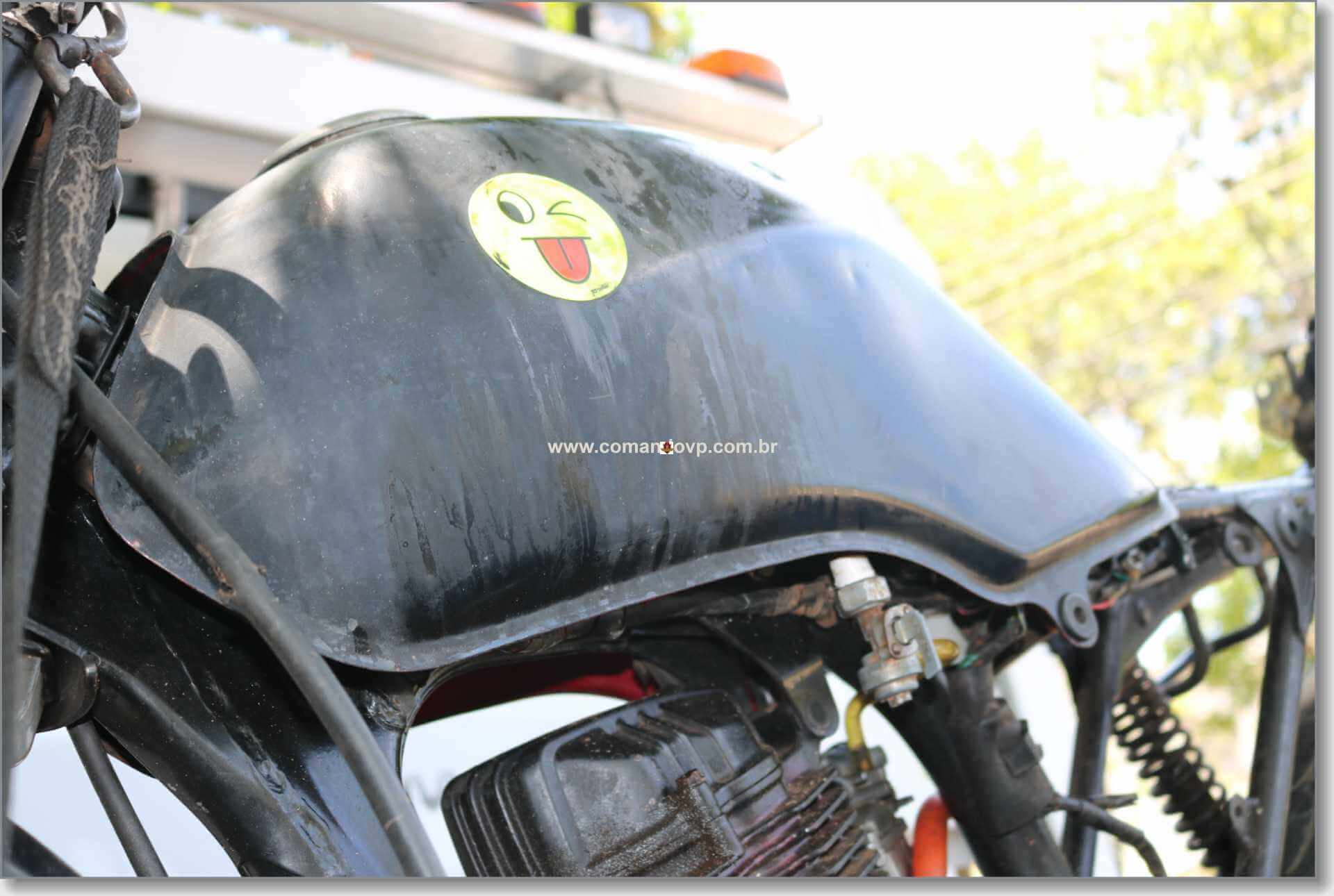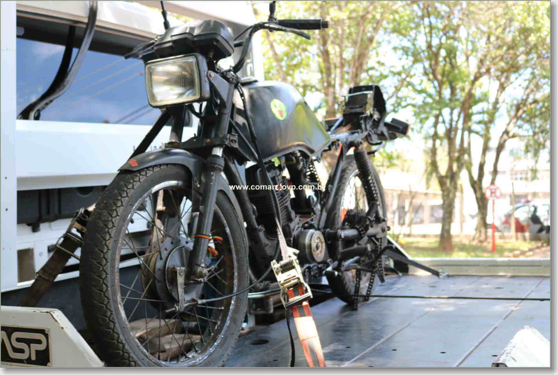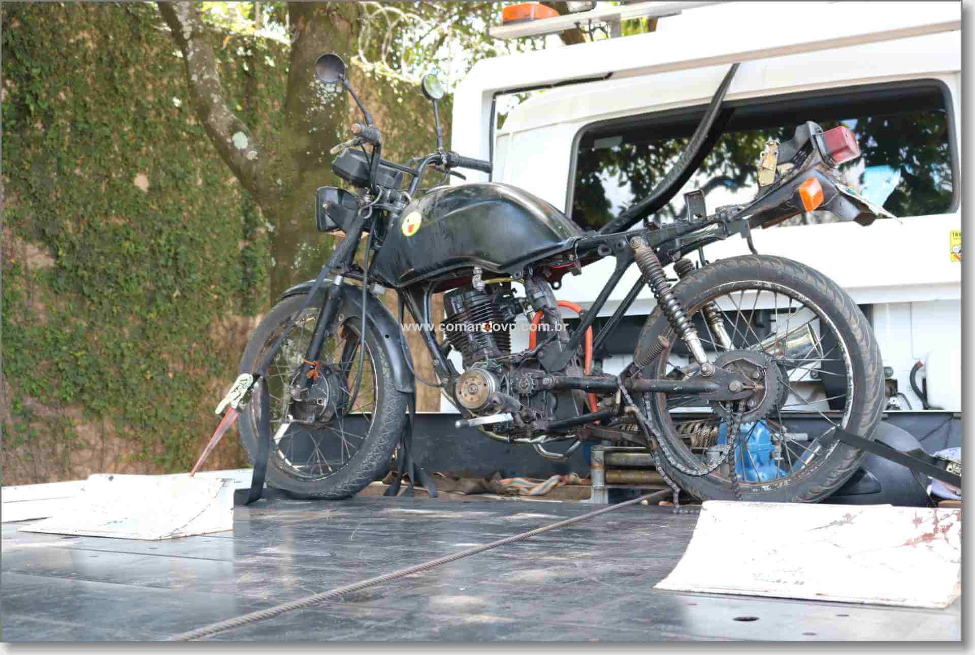 Segundo informações, os policiais militares foram acionados no local, tendo em vista, uma pessoa ter localizado a moto em estado de abandono e ao seu lado um capacete. Os PMs verificaram que a placa da moto era de uma outro motocicleta. Não foi possível verificar se a moto abandonada era furtada ou roubada, pois suas numerações não estavam nítidas. A mesma foi encaminhada ao Plantão Policial e recolhida ao Pátio Municipal.