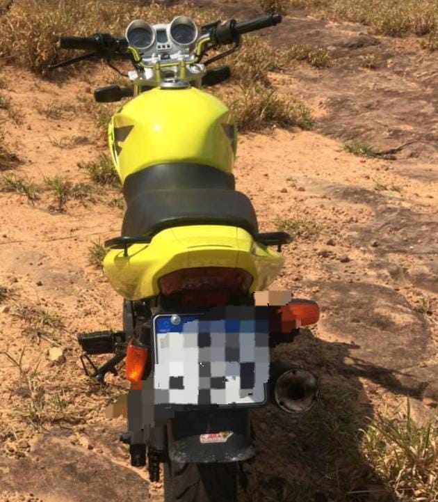 Segundo informações, a PM estava em patrulhamento pelo referido bairro, quando visualizou uma moto amarela em meio ao descampado. A moto estava com queixa de furto.