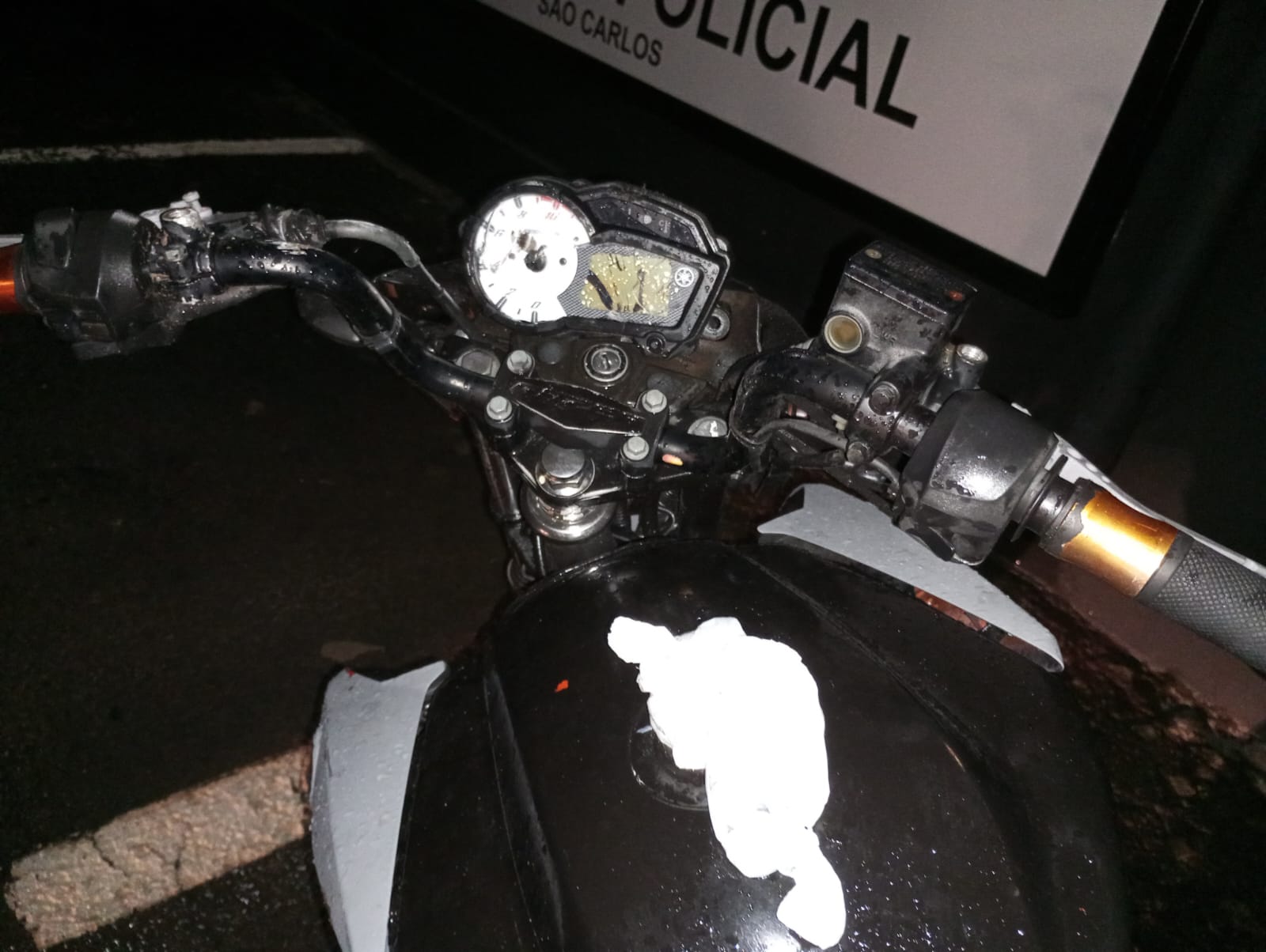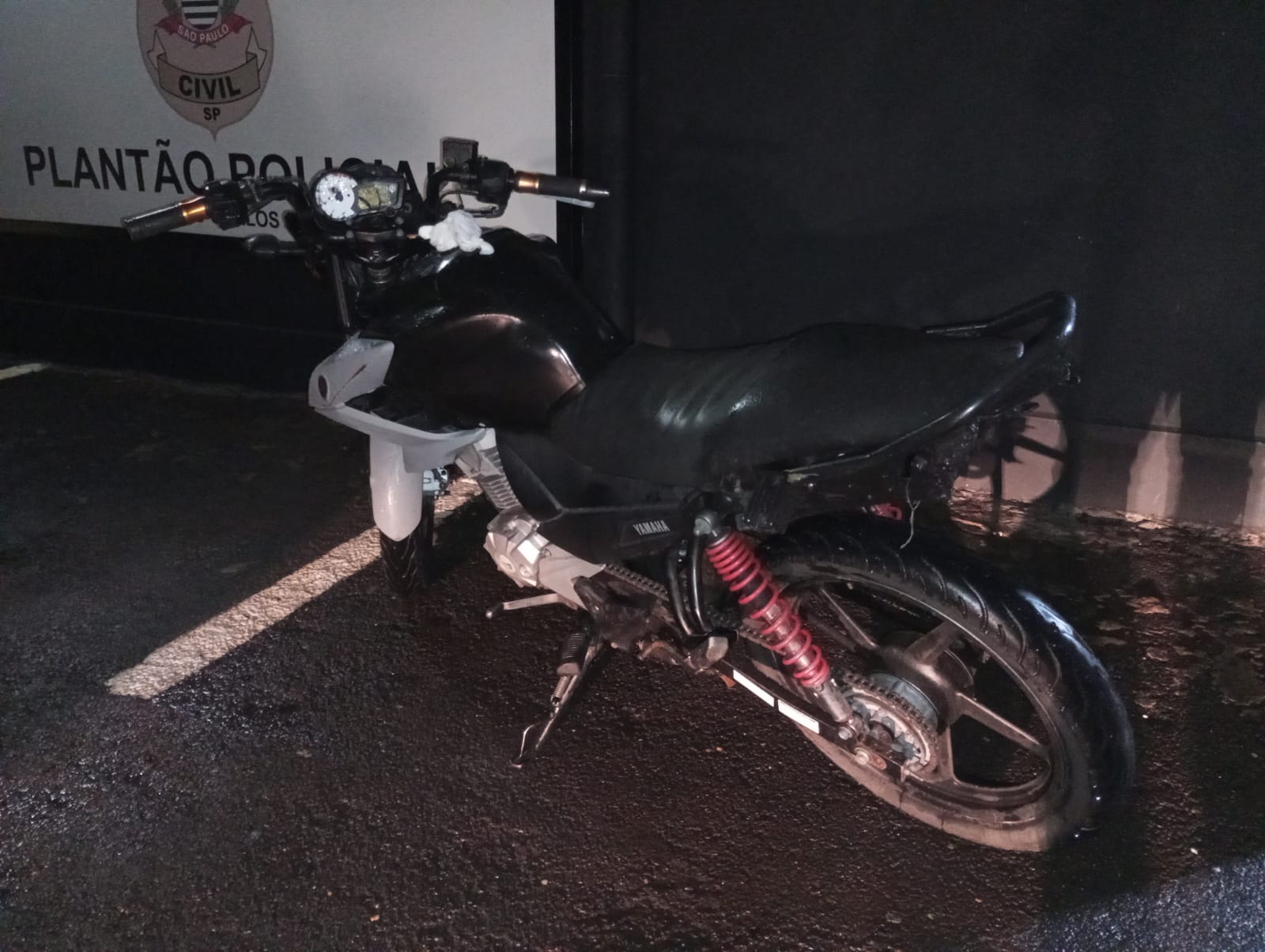 A motocicleta Yamaha Fazer 150, da cor laranja, estava com queixa de furto. Os criminosos além de pintar a moto, ainda causaram vários danos. Ninguém foi detido. A moto foi apresentada na Central de Polícia Judiciária e recolhida ao Pátio.