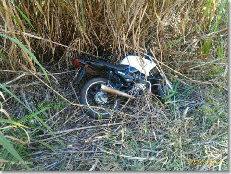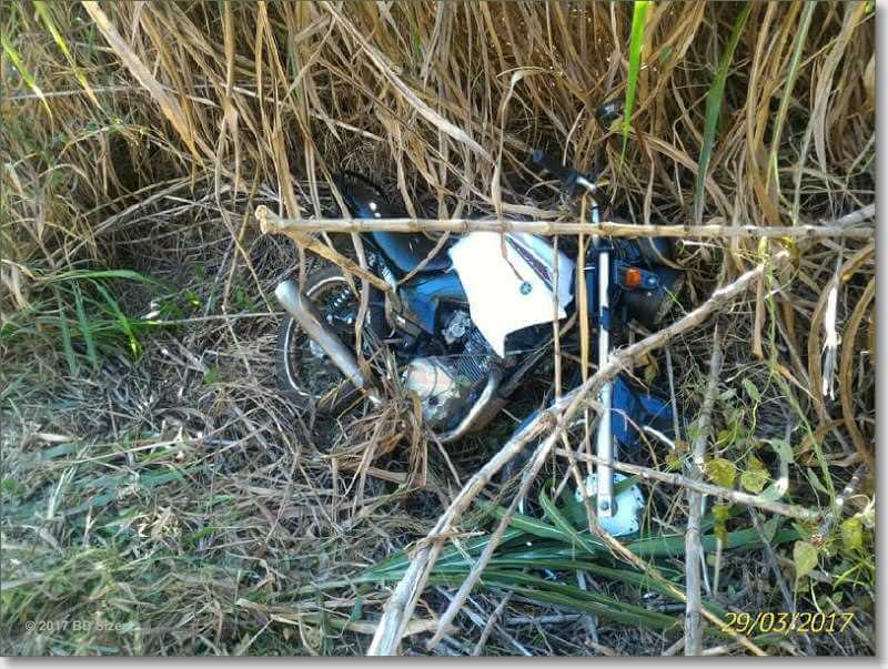 Uma moto roubada em Araraquara-SP, foi localizada em um canavial nesta manhã de quarta-feira, 29-03-2017, em Ibaté-SP.