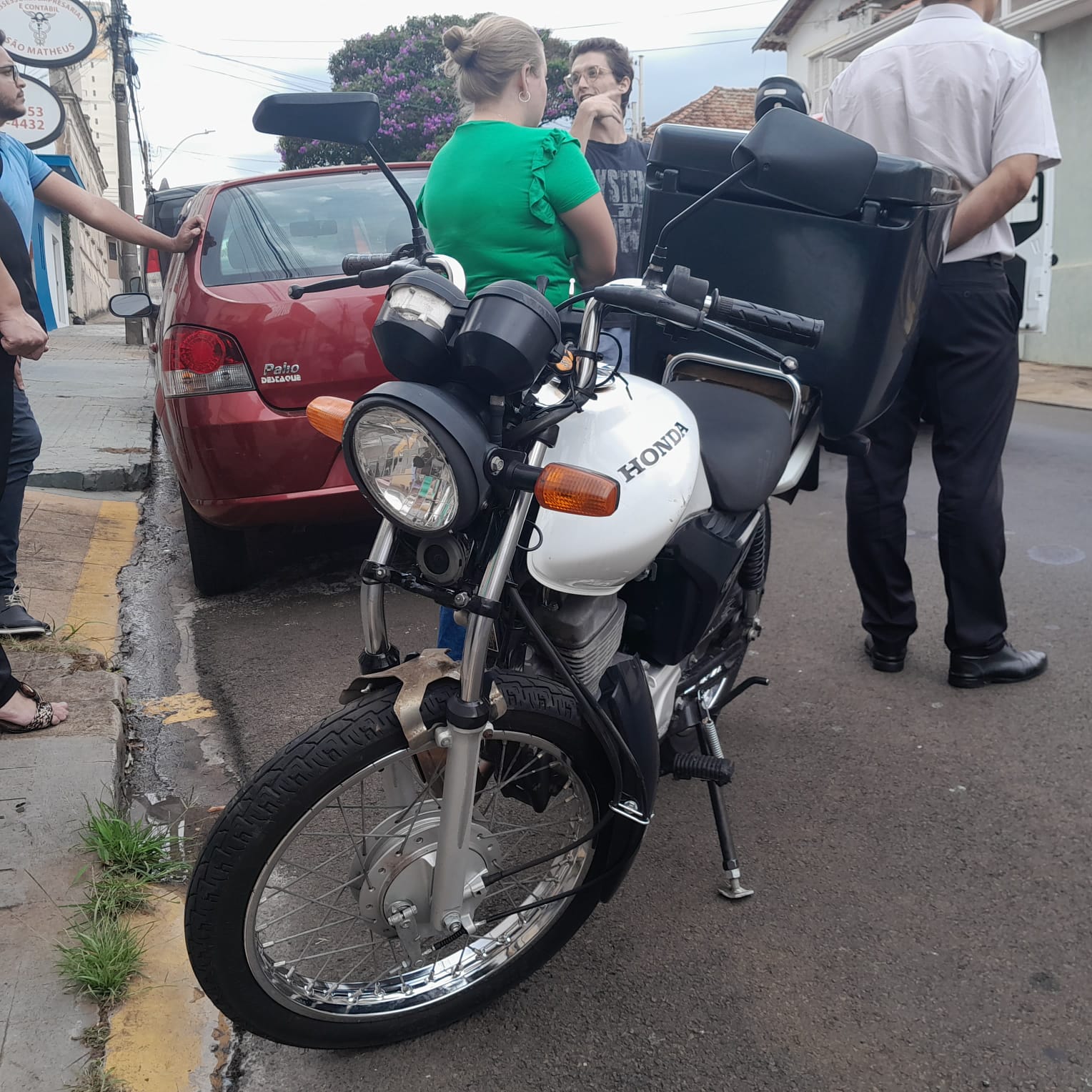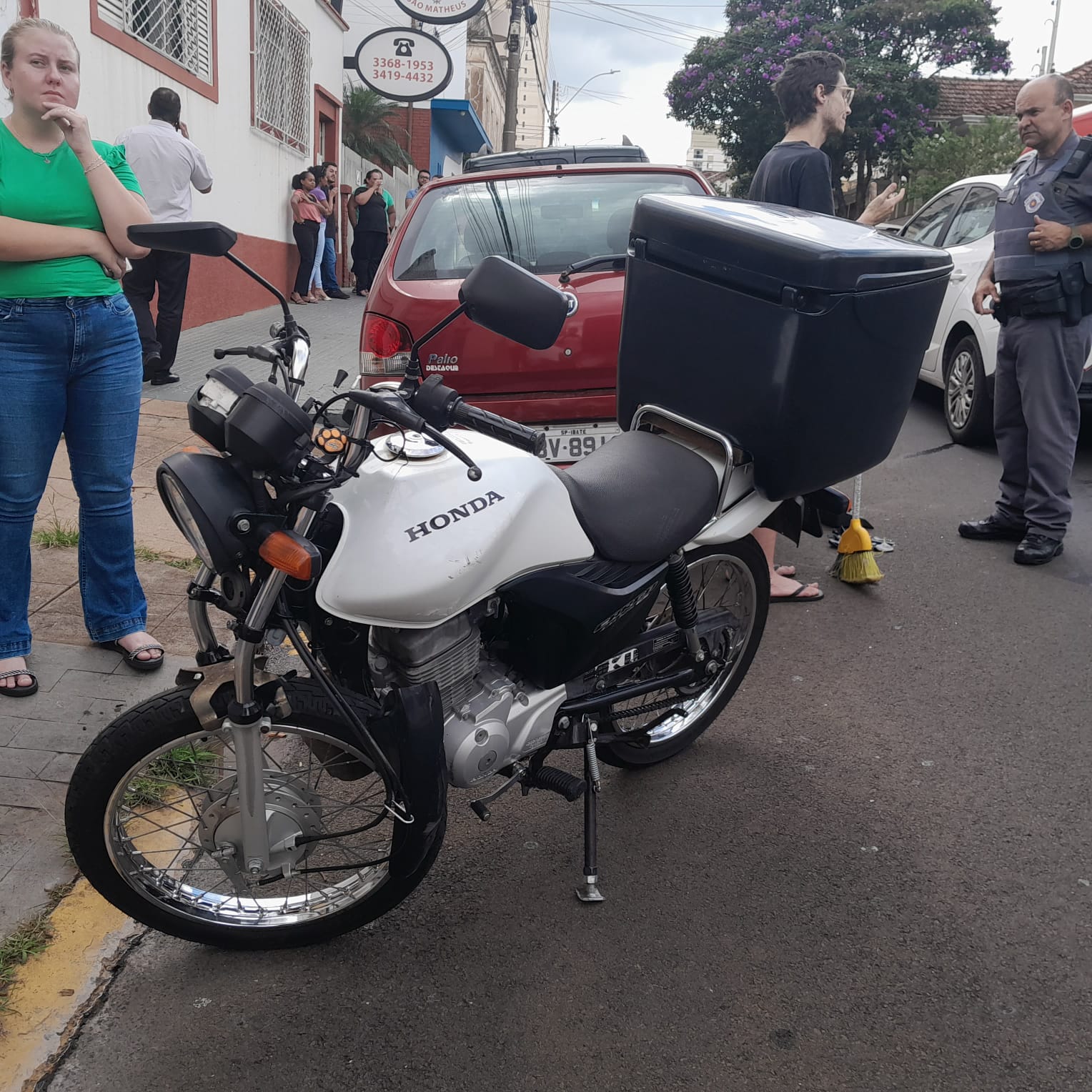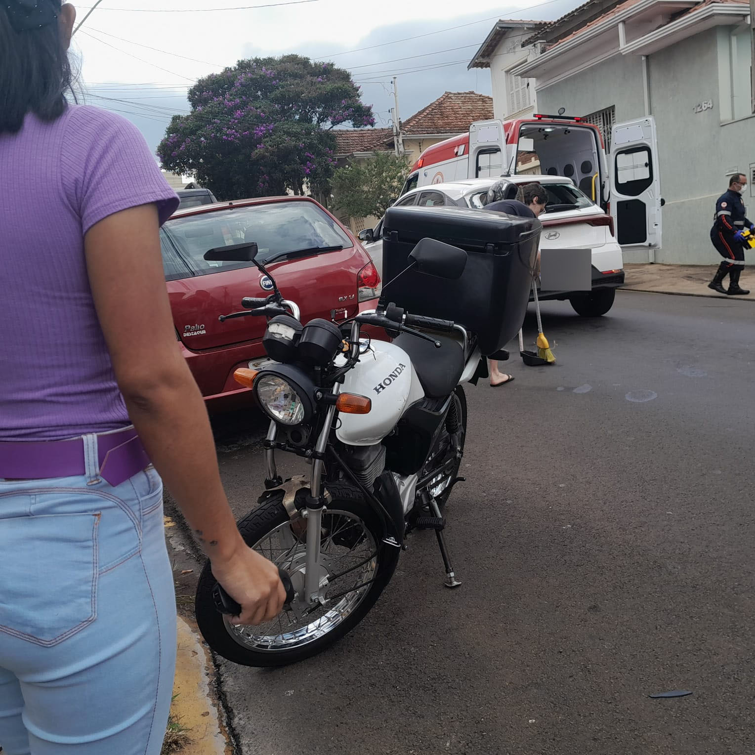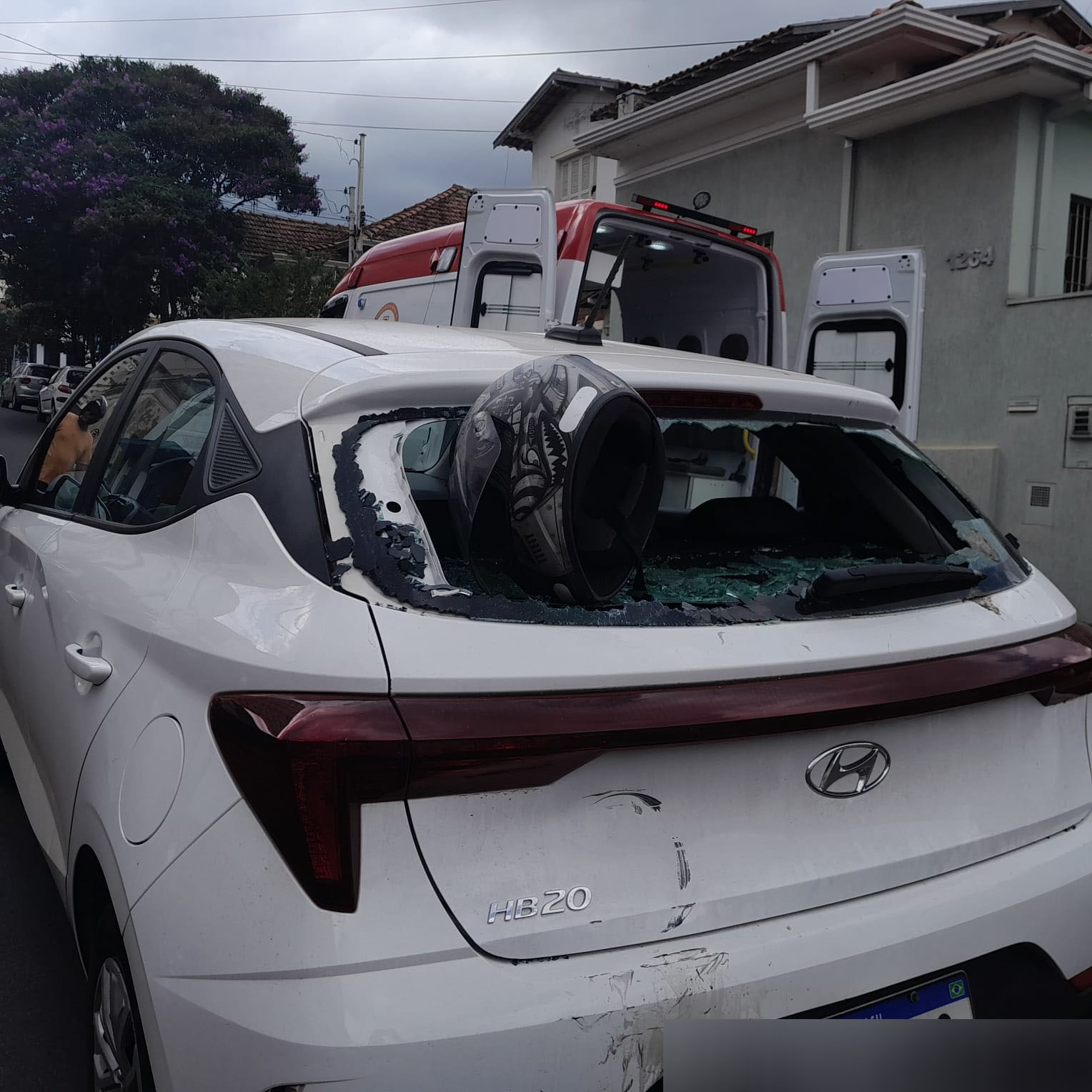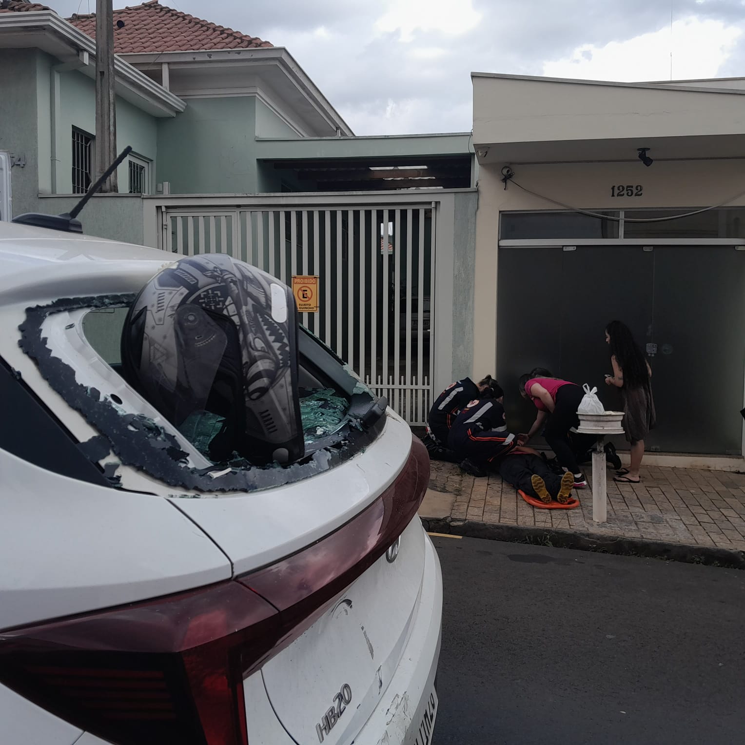 De acordo com testemunhas, o trânsito estava lento, V.L.G, de 24 anos, o qual conduzia uma Honda CG 125 da cor branca, se distraiu e colidiu na traseira do HB20. Com a batida, o rapaz chegou ficar “grudado” no vidro, puxou o corpo e o capacete ficou preso. A vítima saiu andando e caiu na calçada. Populares acionaram o SAMU, a Unidade de Suporte Avançado ( USA ) foi para o local e socorreu o jovem para a Santa Casa. Aparentemente sem gravidade. O rapaz condutor do veículo de aplicativo fiou em estado de choque, mas não sofreu ferimentos. A Polícia Militar foi acionada e tomou as medidas cabíveis. Socorristas da UNIMED também prestaram socorro à vítima.