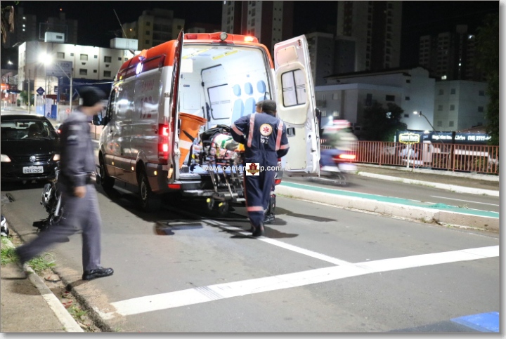 O SAMU foi acionado e socorreu J.P. G.L, de 26 anos para a Santa Casa de Misericórdia. O mesmo sofreu fratura de fêmur e tíbia. A Polícia Militar esteve no local e tomou as medidas cabíveis. Os ocupantes do carro nada sofreram.
