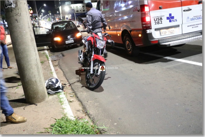 Um motociclista sofreu fraturas nesta madrugada de domingo, 14 de novembro de 2021, ao colidir em um carro , depois em uma placa de sinalização e também em um poste na Avenida São Carlos, região do Terminal Rodoviário, São Carlos-SP. O acidente teria ocorrido por volta da 1:05.