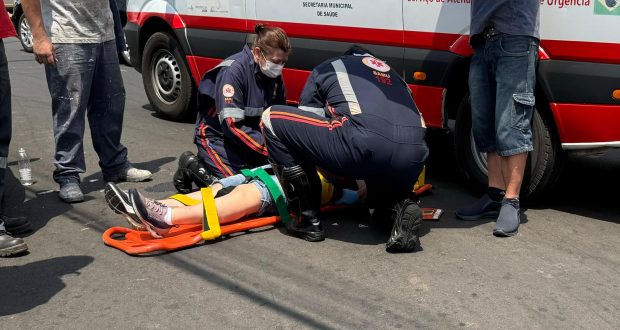 De acordo com informações, o motociclista colidiu em um carro. O SAMU foi acionado e socorreu o ferido. Aparentemente com ferimentos leves.