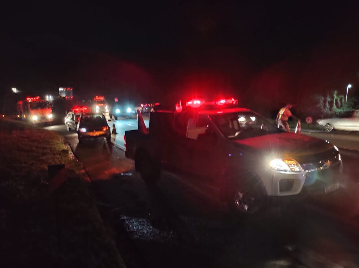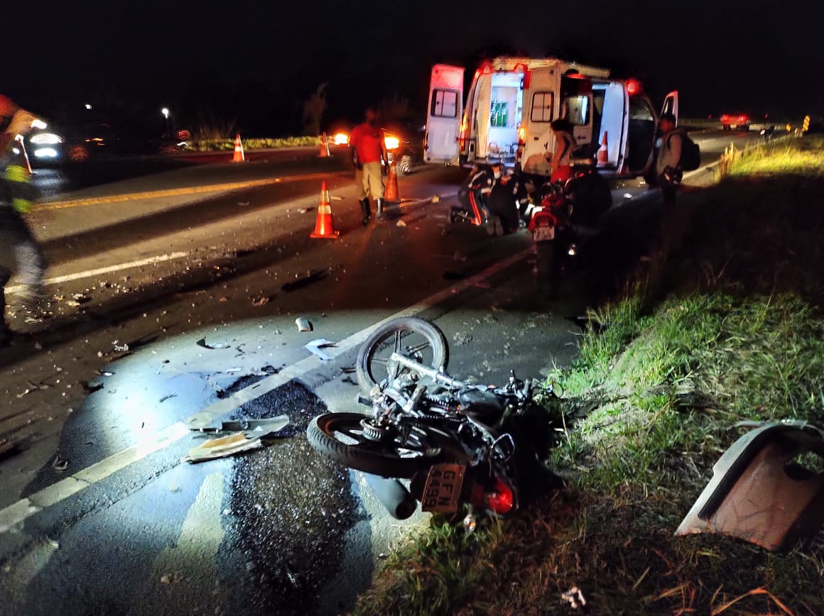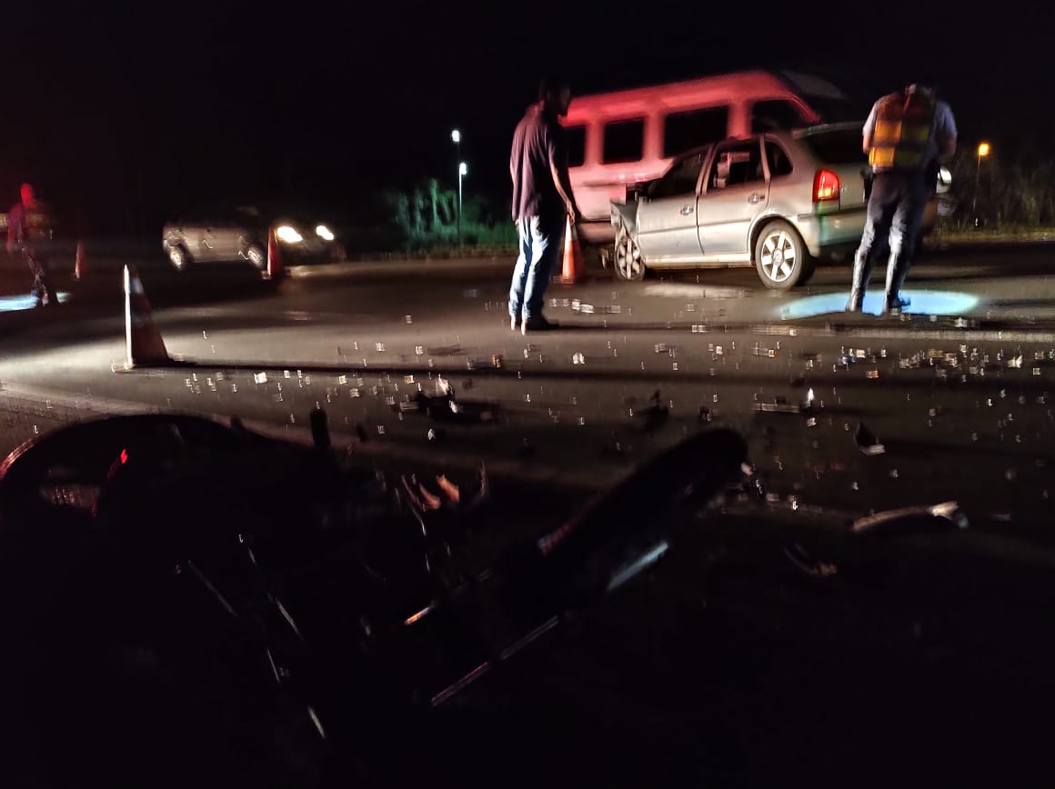Um motociclista ficou gravemente ferido em uma colisão frontal entre sua moto e um carro ocorrida no inicio da noite deste sábado, 29 de maio de 2021, na Rodovia SP-215, região do fábrica da Volkswagen, São Carlos-SP.