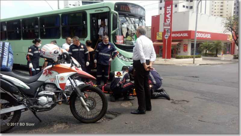 O acidente aconteceu por volta das 13:05. O SAMU foi para o local e encontrou a motociclista de 35 anos ferida. Ela relatou que estava pela rua Dr. Carlos Botelho e o ônibus pela Avenida São Carlos. Testemunhas relataram a nossa equipe de reportagem que a moto passou o sinal vermelho e foi atingida pelo ônibus da empresa Paraty. Mas isso a moça vítima da colisão diz ao contrário. A mesma foi socorrida à Santa Casa. Aparentemente sem gravidade. A moto e o ônibus foram retirados do local antes da chegada dos agentes de trânsito.