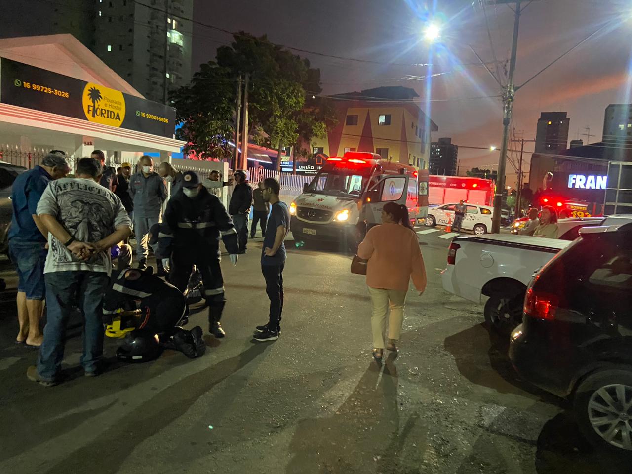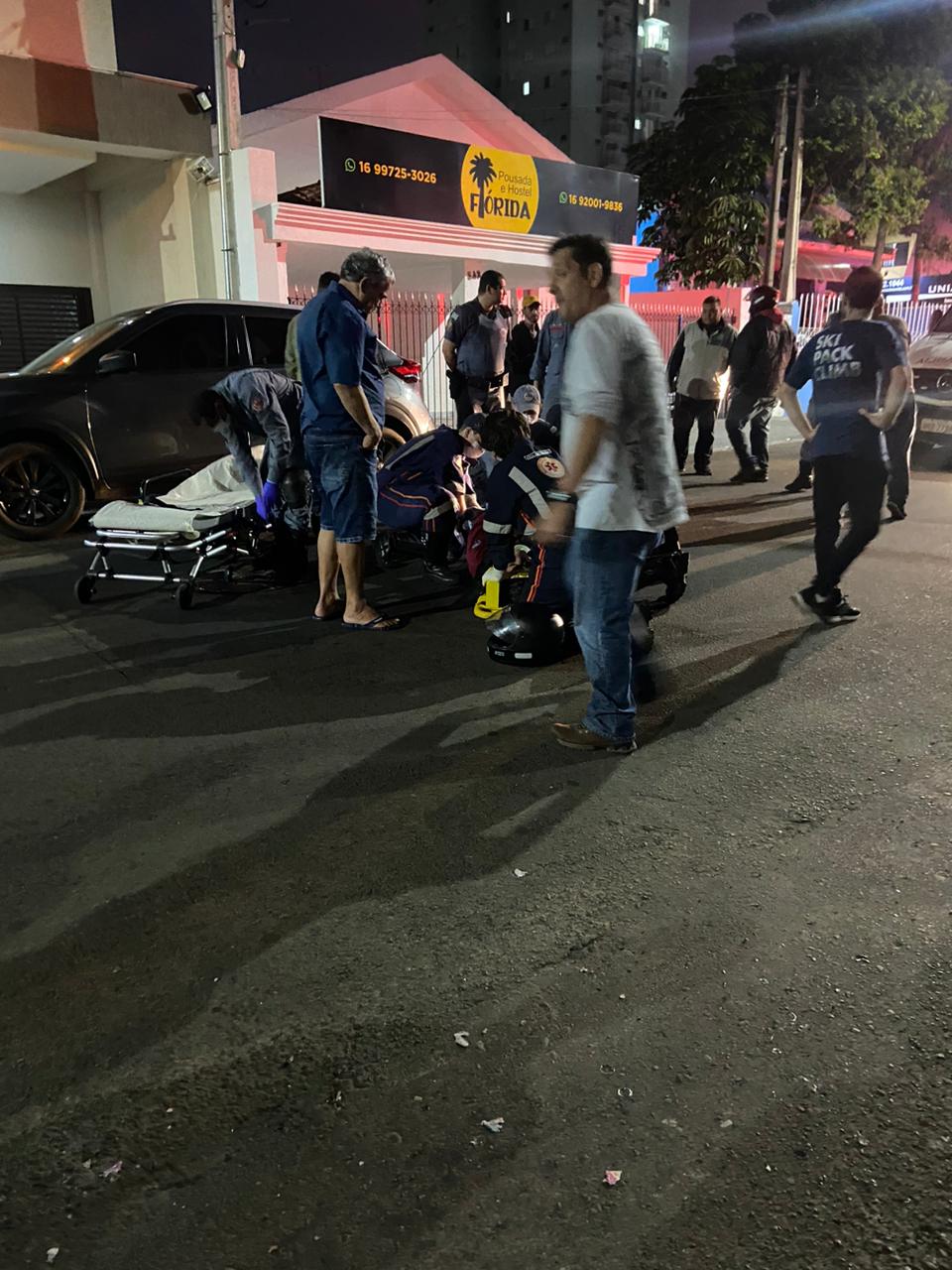 Um motociclista ficou ferido em um acidente de trânsito ocorrido nesta noite de sexta-feira, 19 de maio de 2023, na Rua Jacinto Favoreto, região do Terminal Rodoviário, São Carlos-SP.