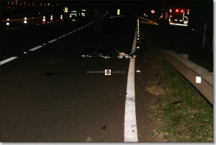 Um motociclista identificado como Rodrigo Fernandes Aguiar, de 28 anos, morreu no inicio da noite deste domingo, 16-06-2019, na SP-318, defronte ao Damha , São Carlos-SP.