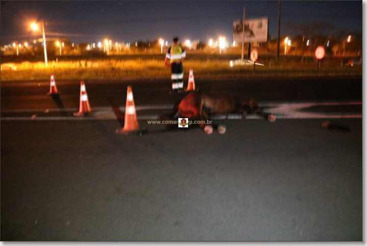 Um motorista disse que atropelou o cavalo e foi até sua casa em Água Vermelha, deixou o carro e voltou no local do acidente e se deparou com uma moto ao solo e dois feridos. O SAMU foi acionado e constatou o óbito do motorista. O jovem que estava no cavalo foi socorrido e encaminhado á Santa Casa.