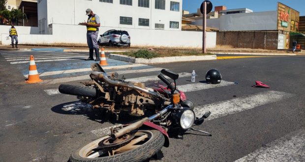 Um motociclista ficou gravemente ferido em um acidente na Rua Maurício Galli, no Jardim Imperador, em Araraquara, na manhã deste sábado (08-05-2021).