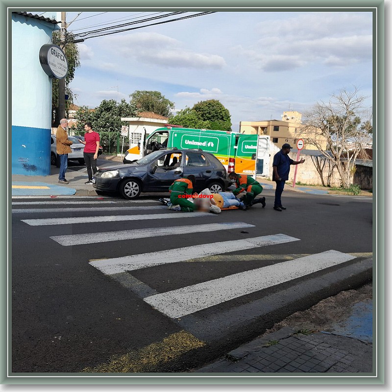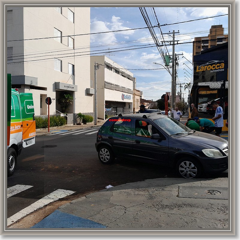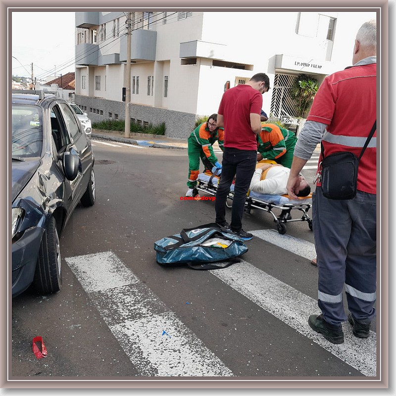De acordo com informações, o motociclista estava pela Rua Major José Inácio, teria avançado o pare e colidido na lateral de um veículo Celta, o qual era conduzido por uma mulher de 30 anos. Com a colisão o motociclista foi ao solo e sofreu  ferimentos aparentemente leves. Uma equipe da UNIMED, a qual passava pelo local, parou e socorreu o rapaz para o hospital 24h. No carro além da condutora, que segundo consta, está gestante de 6 meses, estava também seu marido e sua irmã. A gestante ficou um pouco nervosa, mas não teve ferimentos.