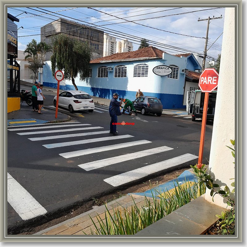 Um motociclista foi socorrido por uma ambulância da UNIMED nesta tarde de sábado, 5 de julho de 2025, após sofrer um acidente de trânsito na Rua Major José Inácio, cruzamento com a Rua Rui Barbosa, Centro de São Carlos-SP.