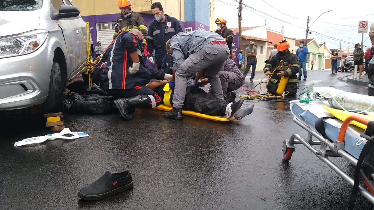 Segundo informações, a moto conduzida pelo jovem de 22 anos teria se chocado com com um veículo Onix conduzido por um homem de 55 anos. Com a colisão o rapaz foi parar debaixo do carro. O SAMU e Corpo de Bombeiros foram acionados e o jovem socorrido com suspeita de fratura nas pernas e dores na coluna. A Polícia Militar foi acionada para tomar as medidas necessárias.