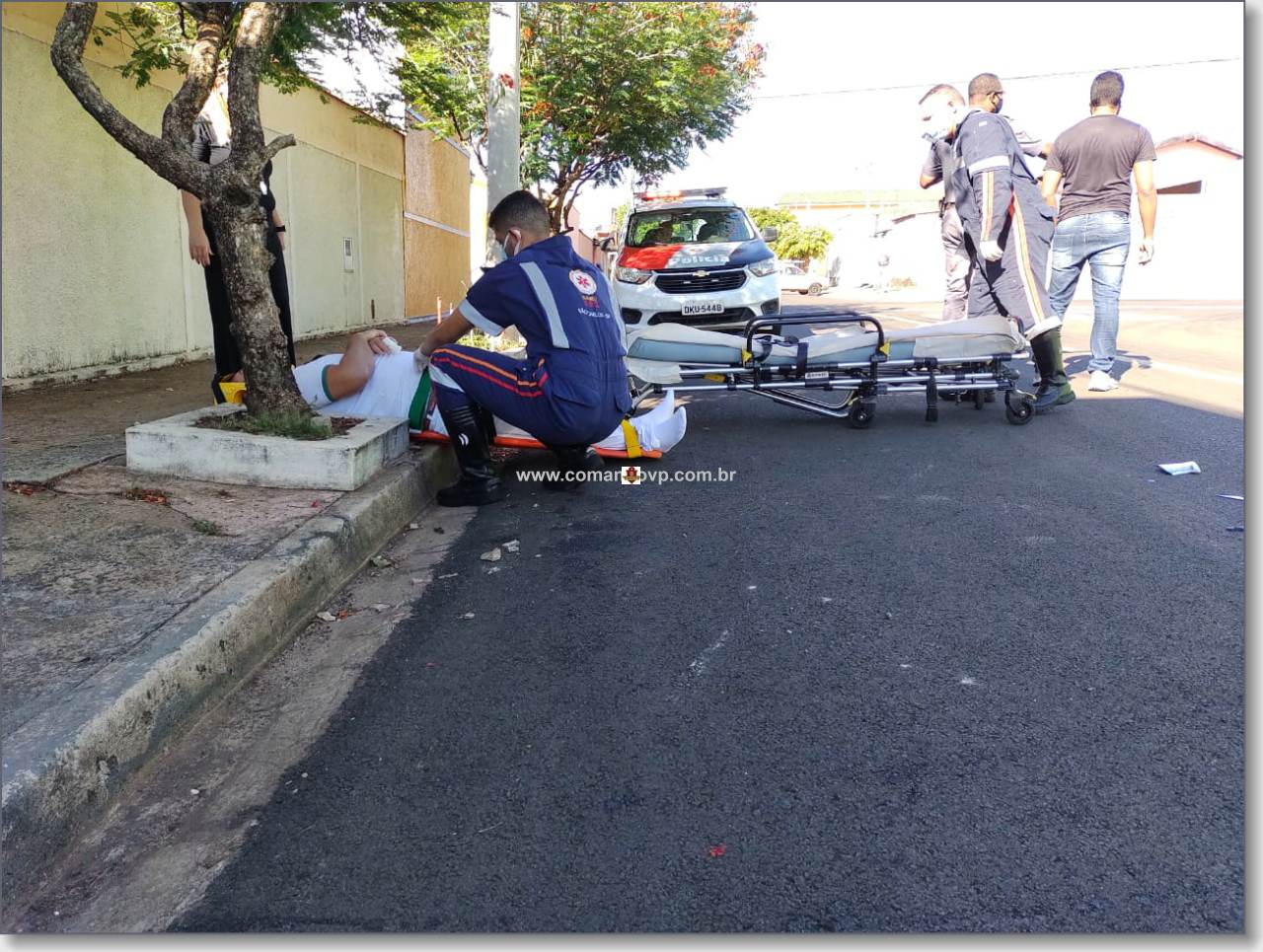 Um motociclista ficou ferido nesta manhã de segunda-feira, 23 de novembro de 2020, na Avenida Iwagiro Toyama, bairro Jd. Paulistano, São Carlos-SP.