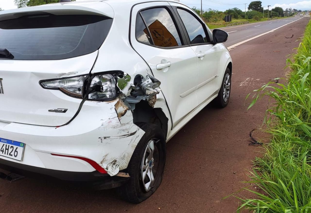 O condutor do Argo, que tem placas de Jaboticabal-SP, nada sofreu e aguardou a Polícia Militar Rodoviária.