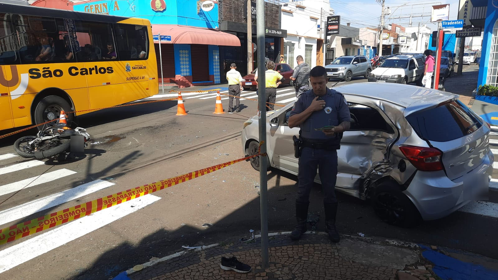 De acordo com informações, um veículo Ford KA, estaria pela Rua Tiradentes, ao tentar cruzar a preferencial ( Av. São Carlos), acabou sendo atingido pela moto. Com a colisão o motociclista foi arremessado ao solo e ficou gravemente ferido. Populares acionaram o SAMU, o qual intubou a vítima e encaminhou para a Santa Casa. De acordo com informações, um carro parado no local proibido, teria atrapalhado a visão do condutor do Ford KA.