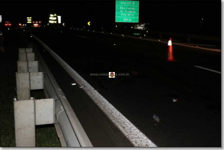 Dois ocupantes de uma moto morreram nesta noite de sábado, 23-02-2019, na rodovia  Washington Luís, no sentido capital/interior, São Carlos-SP.