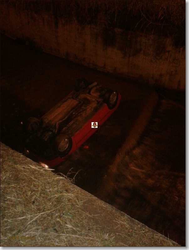 Segundo informações da PM, E.R, de 22 anos, ,foi resgatado e socorrido à Santa Casa. Aparentemente sem gravidade. A PM tomou as medidas cabíveis. As causas do acidente são desconhecidas, mas de acordo com boletim de ocorrência, o motorista aparentava estado de embriagues e por este motivo foi submetido retirada de sangue para exame de dosagem alcoólica. O fato foi registrado no Plantão Policial.