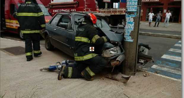 Um homem ficou retido nas ferragens de um carro ao colidir em um poste por volta das 11:00 desta segunda-feira, 26-03-2018, na Avenida São Carlos, região do Cemitério Nossa Senhora do Carmo, São Carlos-SP.