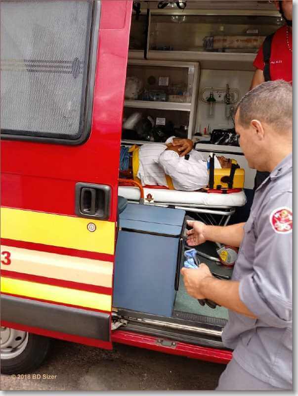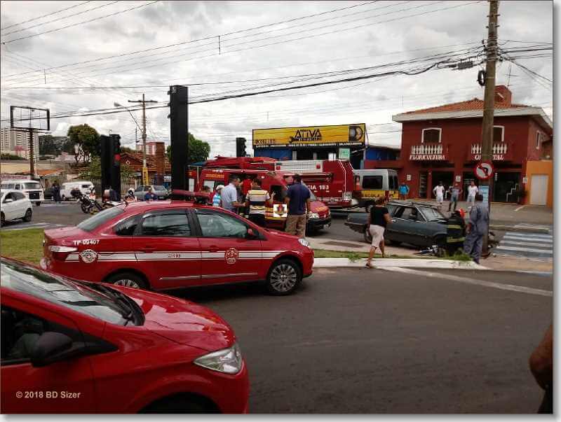 O Corpo de Bombeiros foi acionado e encaminhou Ademir dos Santos, de 59 anos, à Santa Casa de São Carlos, com ferimentos leves. Ele disse que um veículo Saveiro transitava no sentido Trevo Norte/Centro, mas teria passado no semáforo vermelho. Para evitar a colisão entre os dois carros, Ademir que transitava no sentido contrário, desviou e atingiu o poste. O condutor da Saveiro não foi identificado.