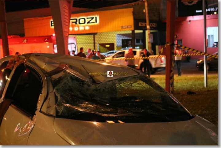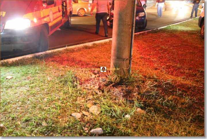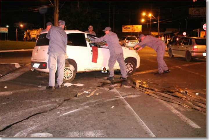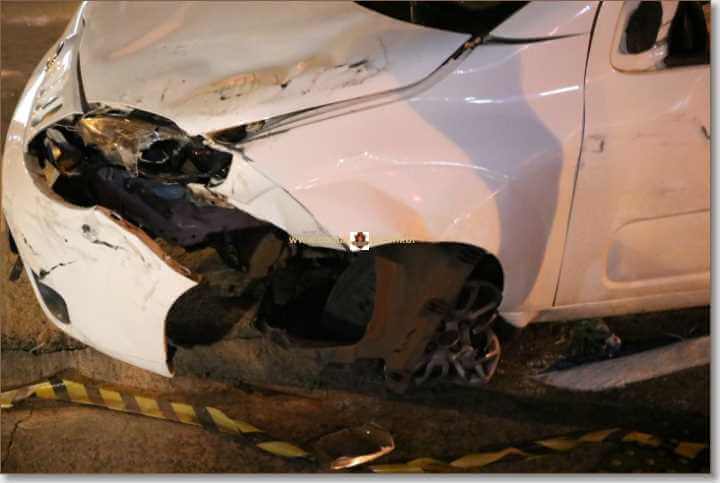 Segundo informações, o mesmo estava pela referida avenida, perdeu controle da direção, bateu em um poste, colidiu com uma estatua e parou com as rodas para cima.